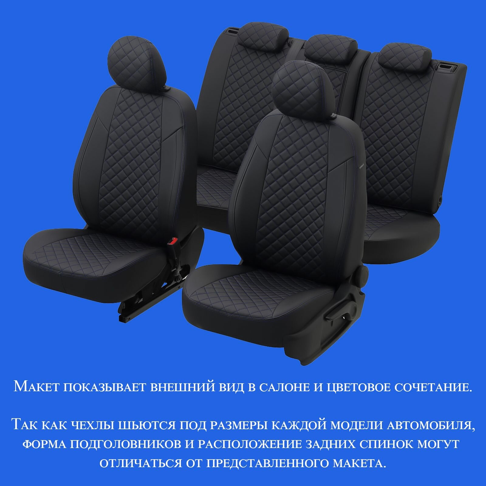 Комплект чехлов Автопилот Ромб Chevrolet Cobalt с 11г. / Ravon R4 с 16г. Черный + Синий