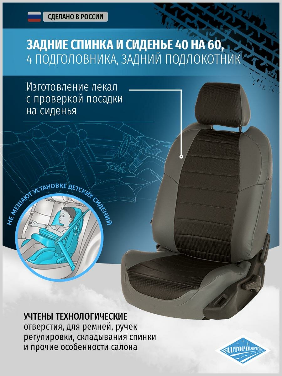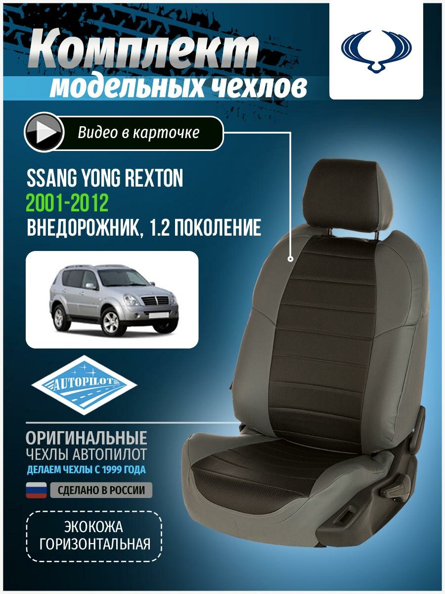 Купить Комплект чехлов Автопилот Экокожа SsangYong Rexton II с 07-12г. / UAZ Patriot с 07-14г. Серый + Черный