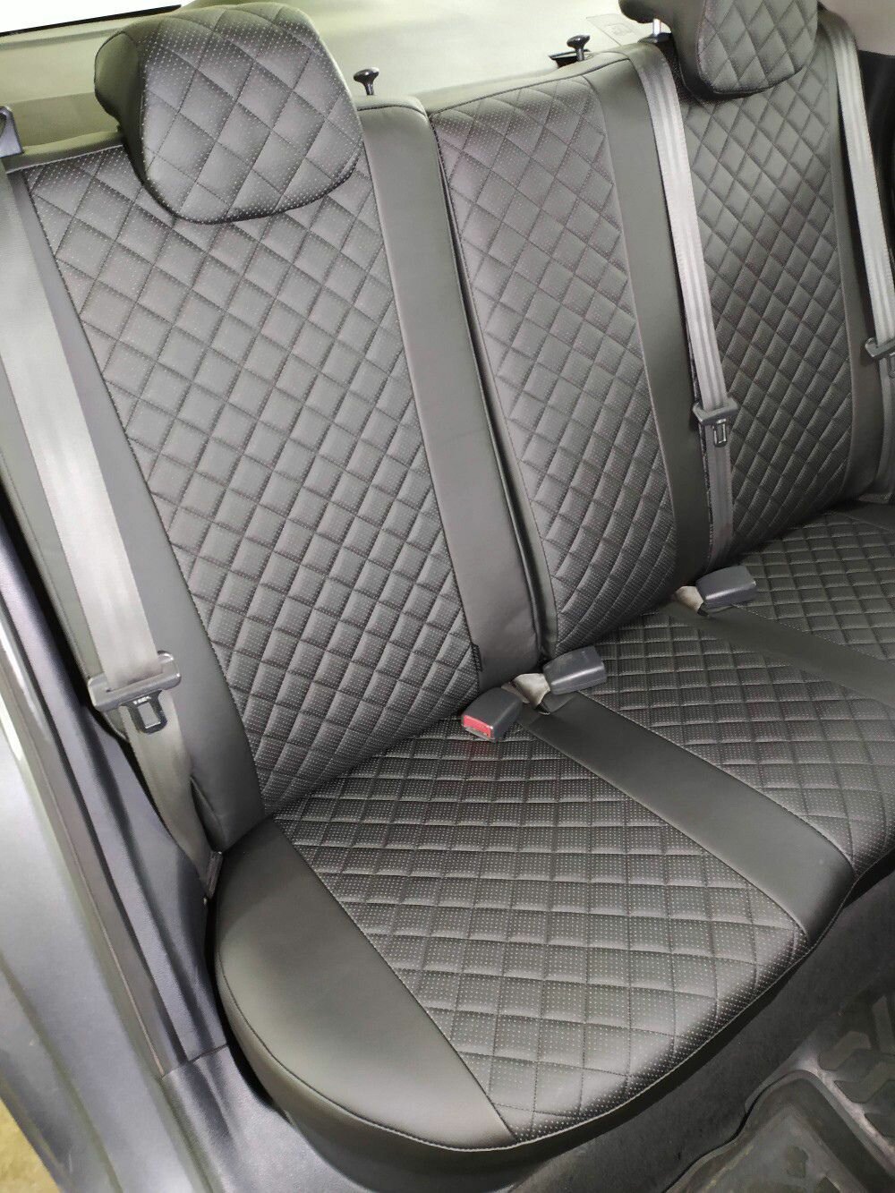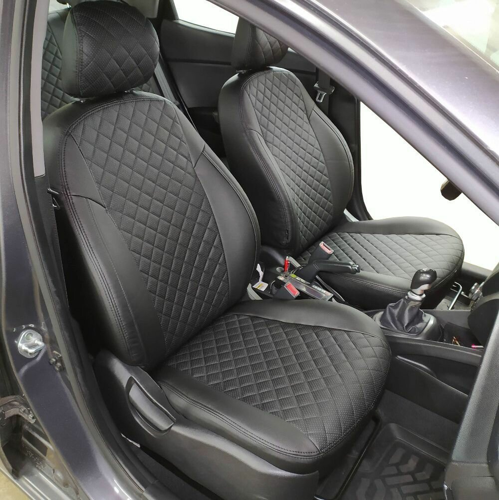 Комплект чехлов АВТОПИЛОТ из экокожи для Hyundai Solaris седан/Kia Rio седан, ромб, черный