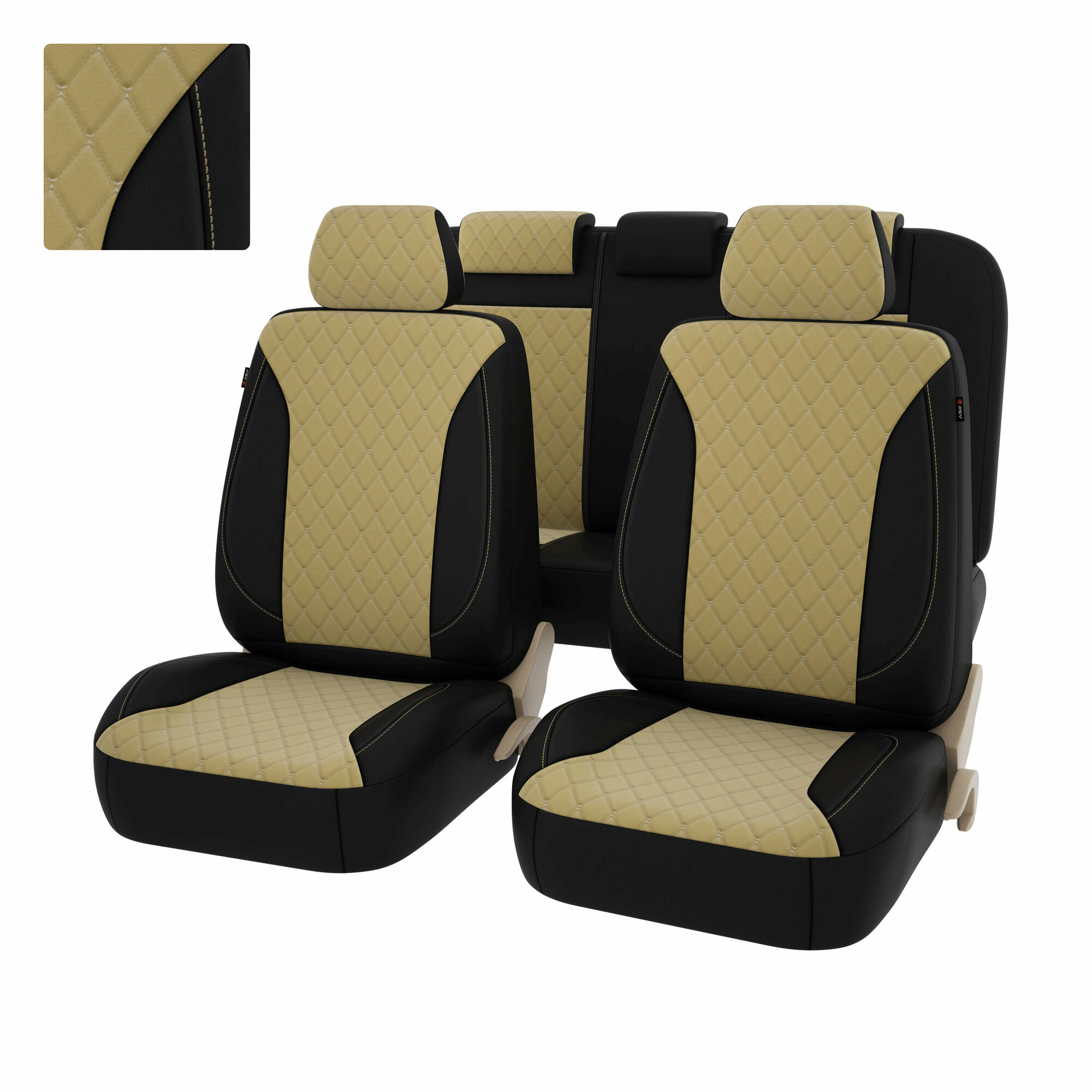 Чехлы PSV Graf Next велюр/экокожа ромб бабочка бежевая отстрочка черно-бежевые PSV PSV 136469 | цена за 1 шт