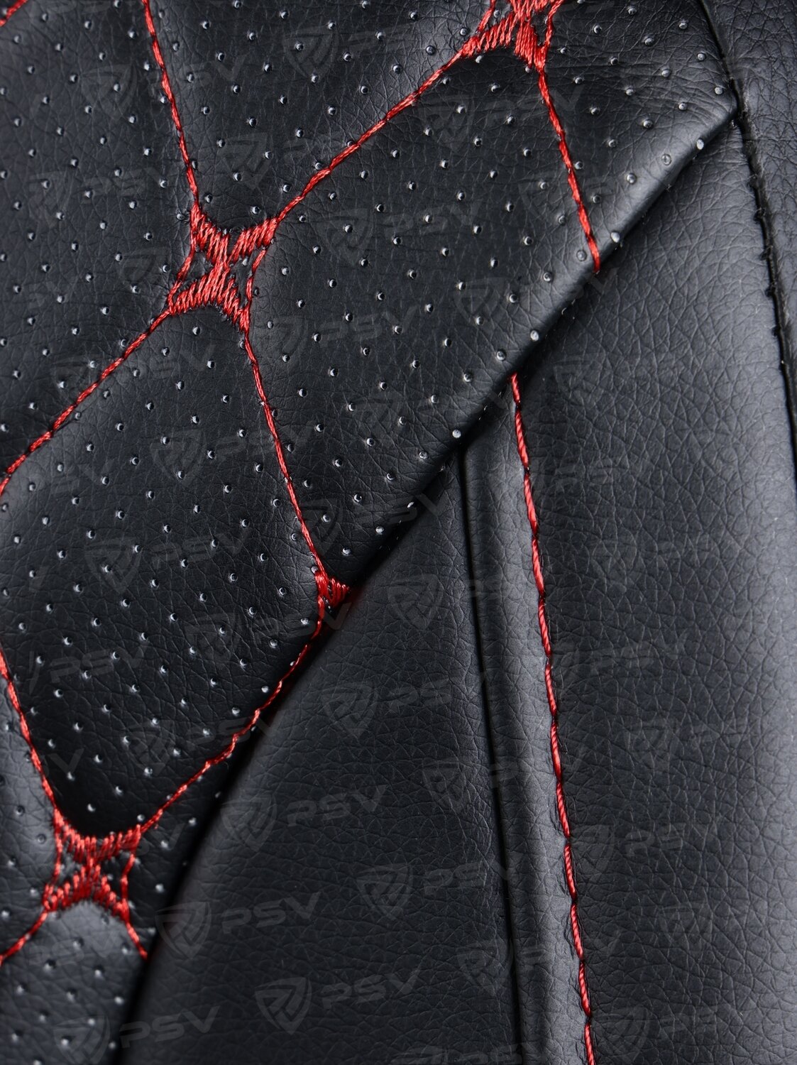 Чехлы PSV Lotos Next 2 FRONT (Черный/отстрочка красная), ромб + экокожа, 135896