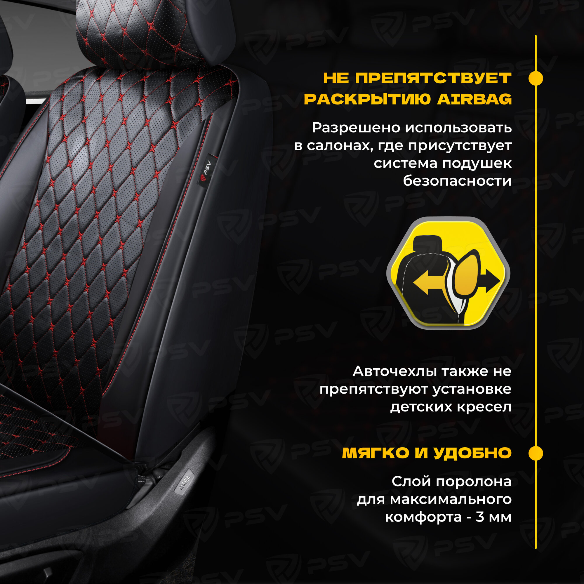 СохранитьЧехлы в машину универсальные PSV Graf Next (Черный, ромб красный, отстрочка красная), ромб + экокожа, 136301 интересное: