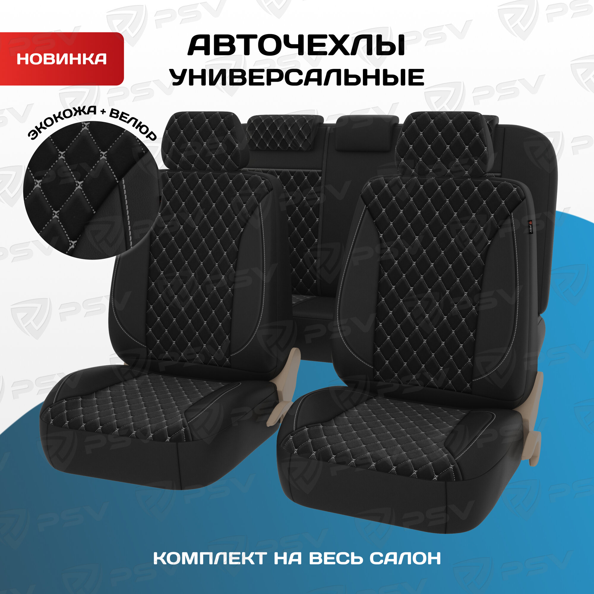 Чехлы в машину универсальные PSV Graf Next (Черный, ромб черный, отстрочка черная), велюр + экокожа, 136466