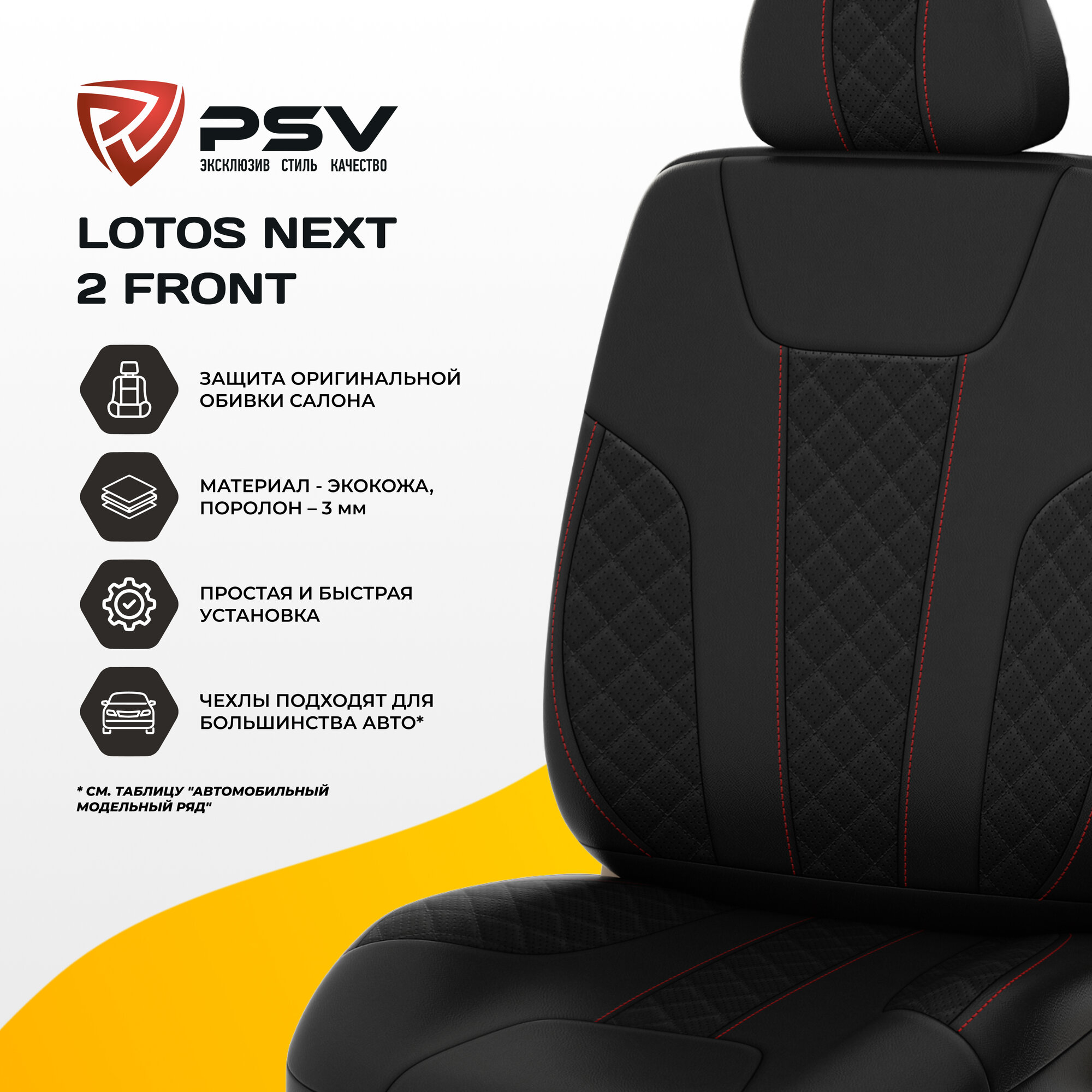 Купить Чехлы PSV Lotos Next 2 FRONT (Черный/отстрочка красная), ромб + экокожа, 135896