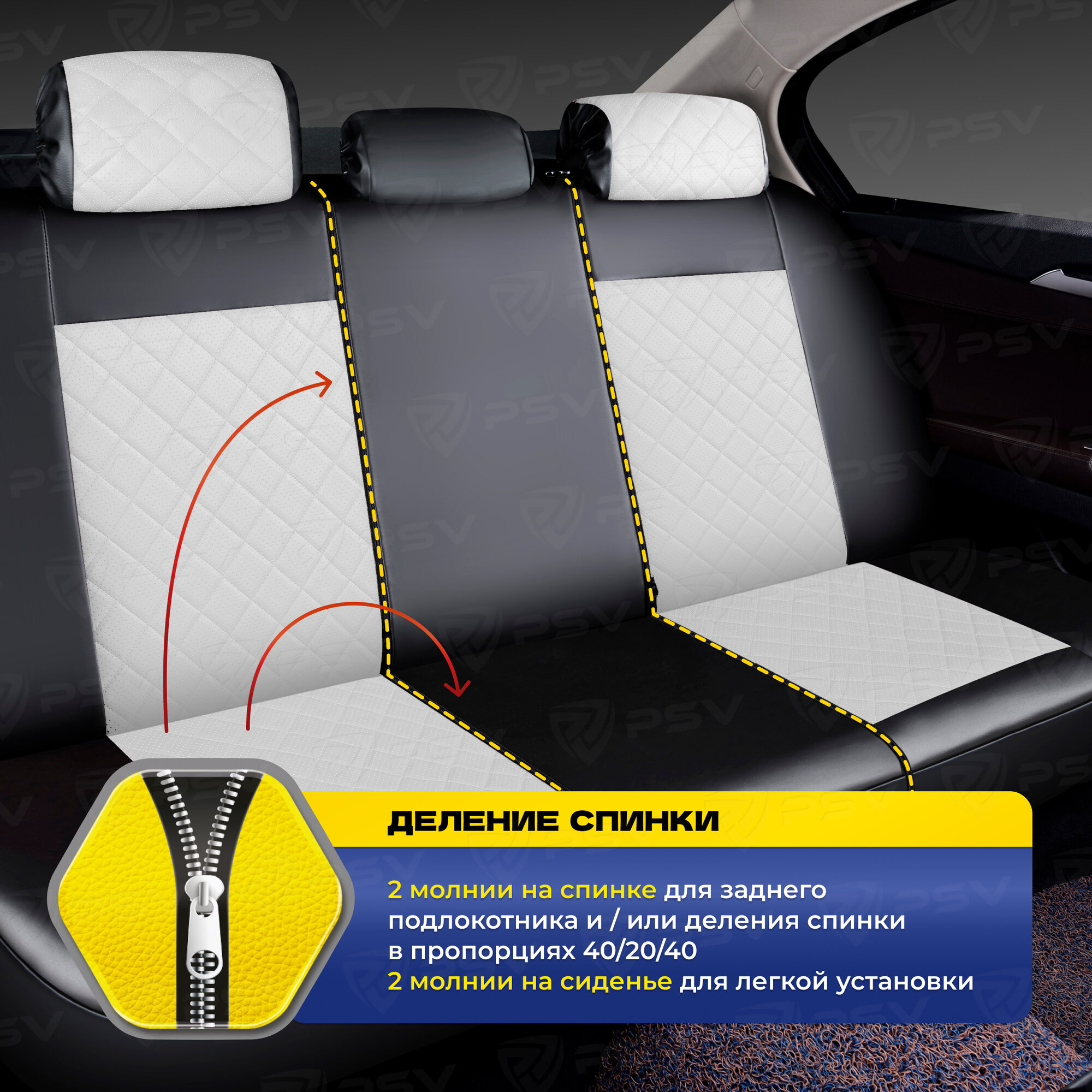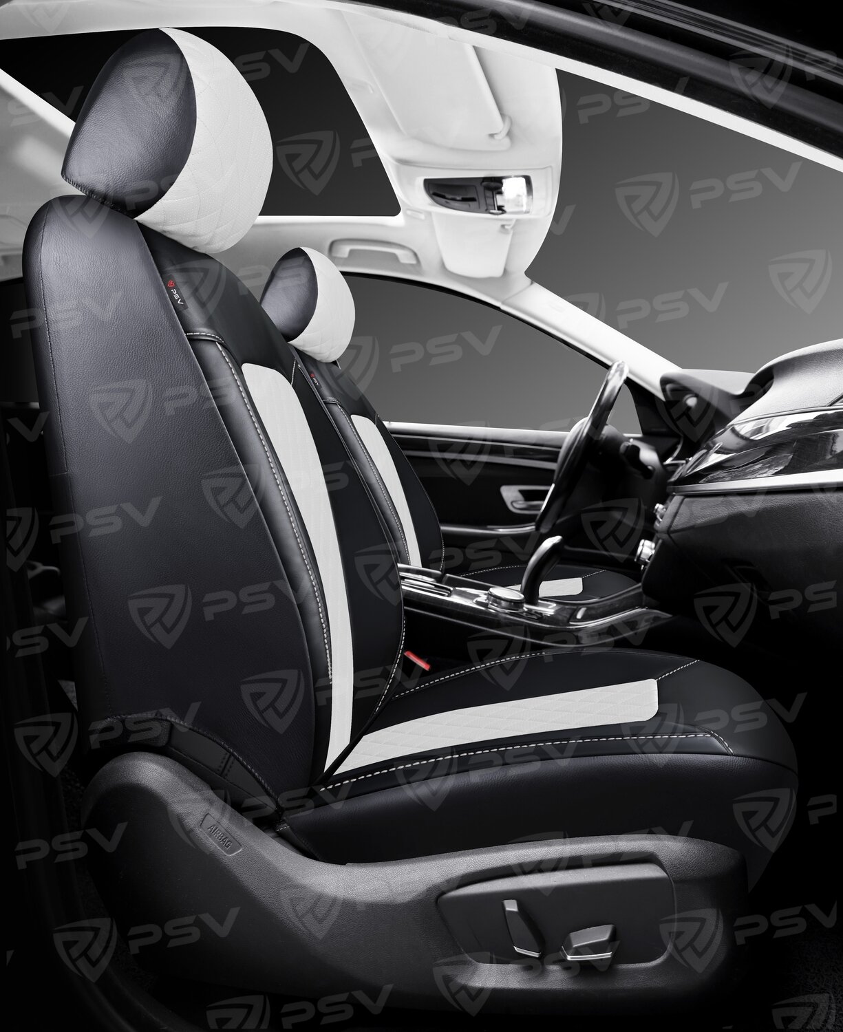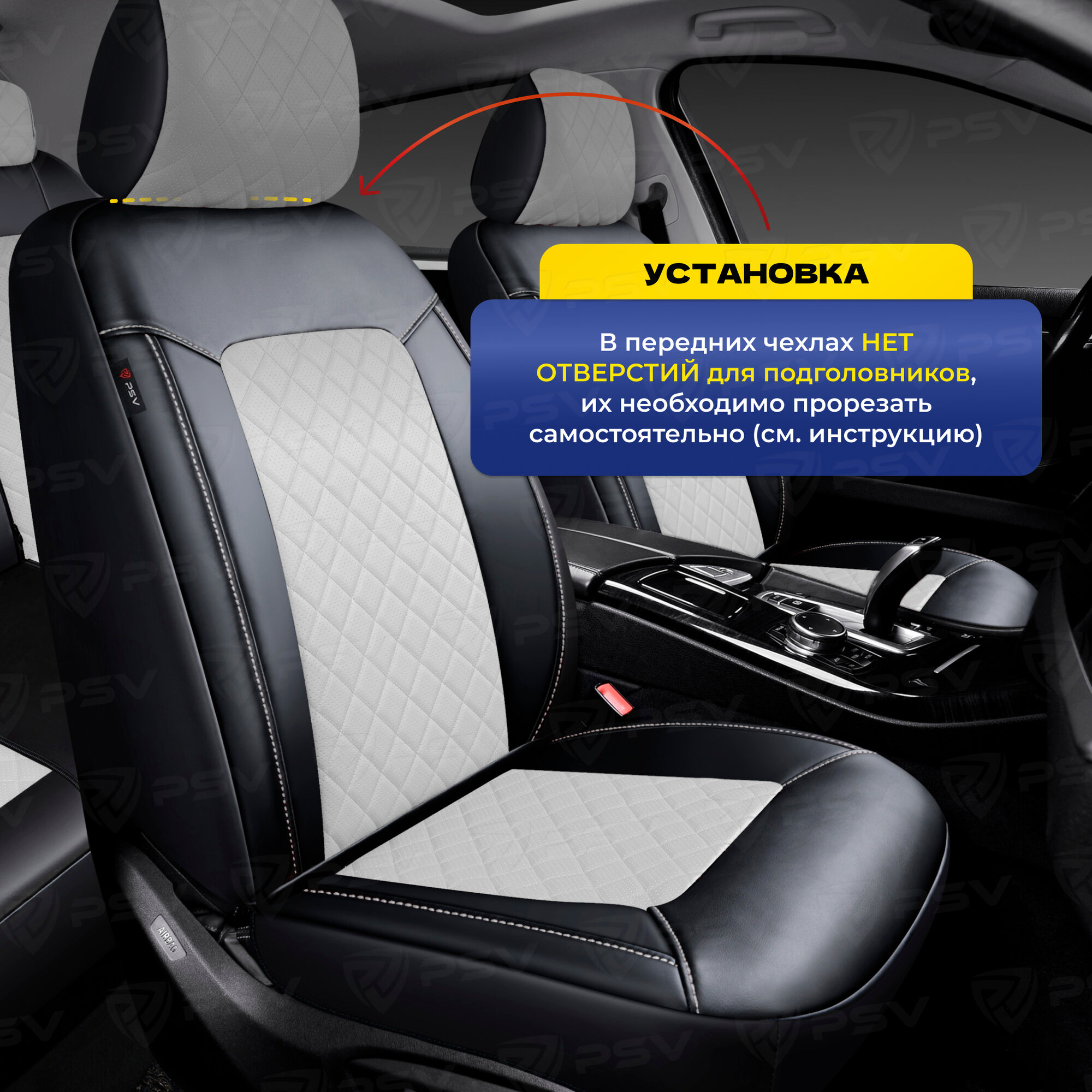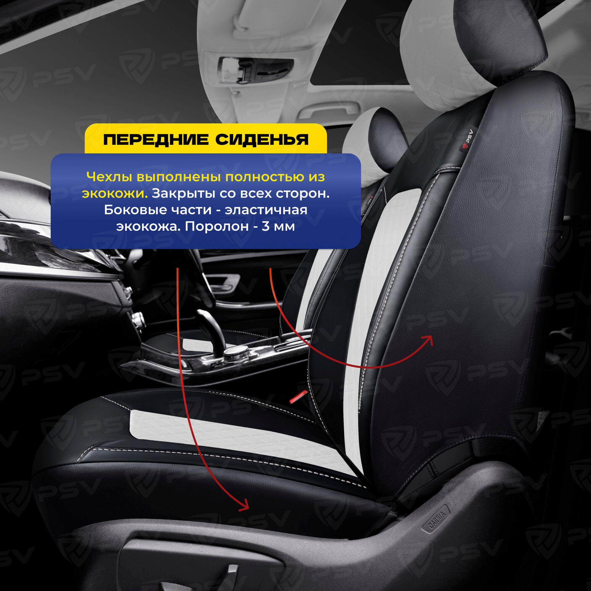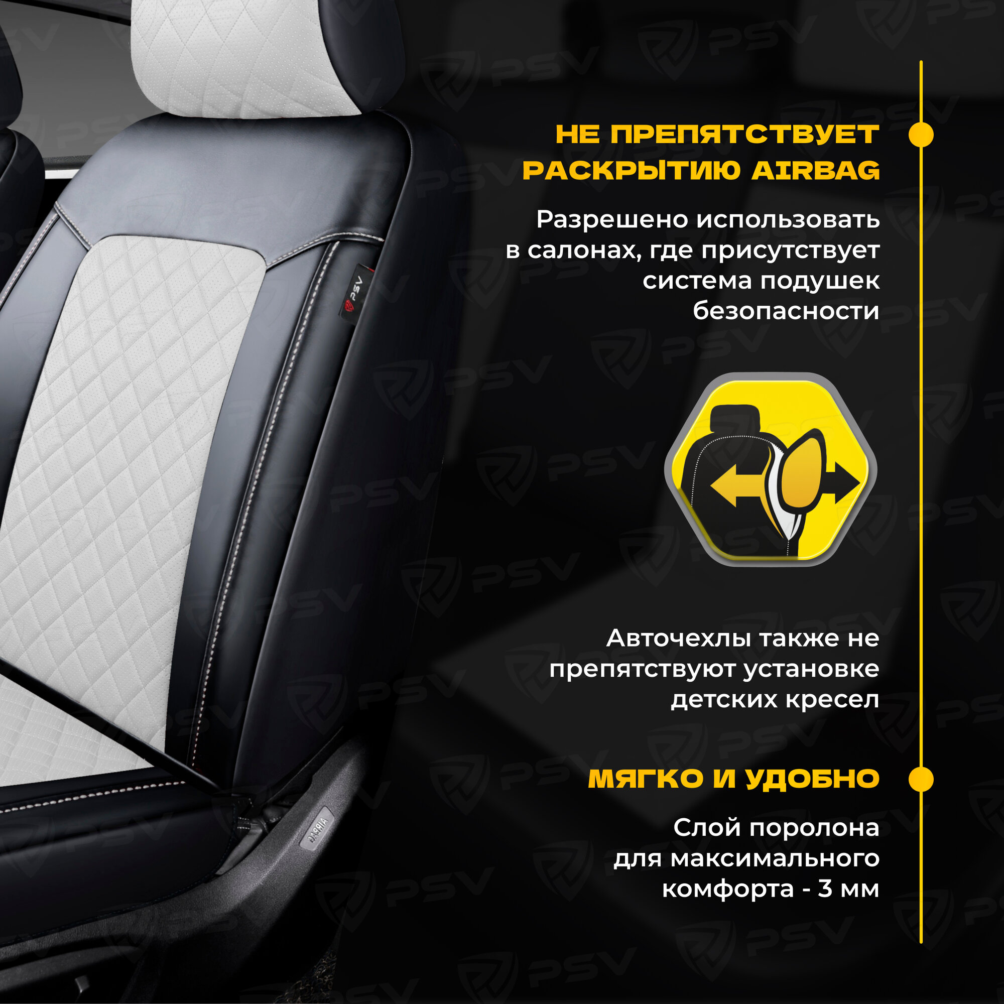 Чехлы PSV Elegant Next экокожа ромб белая отстрочка ромба черные PSV 135953 | цена за 1 шт