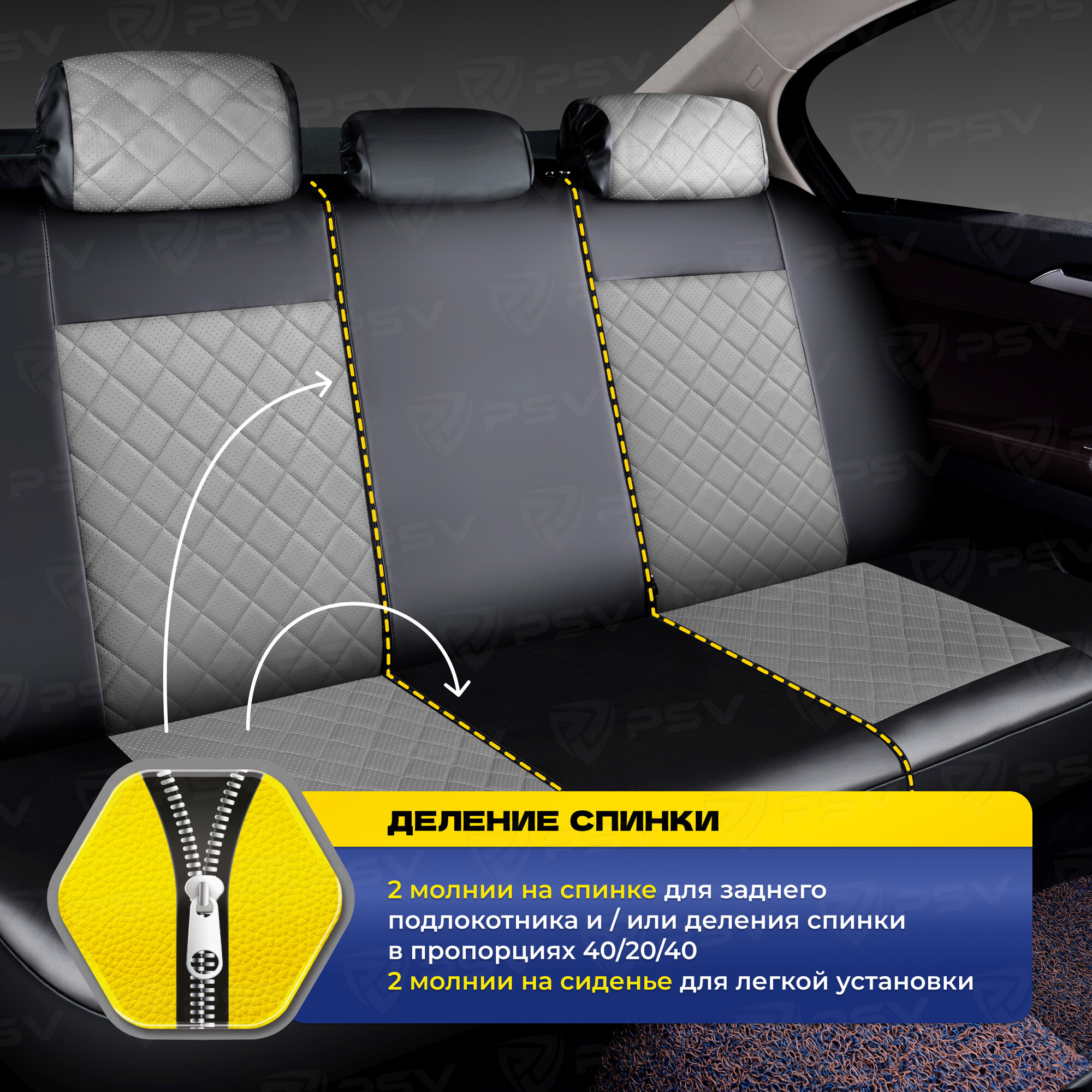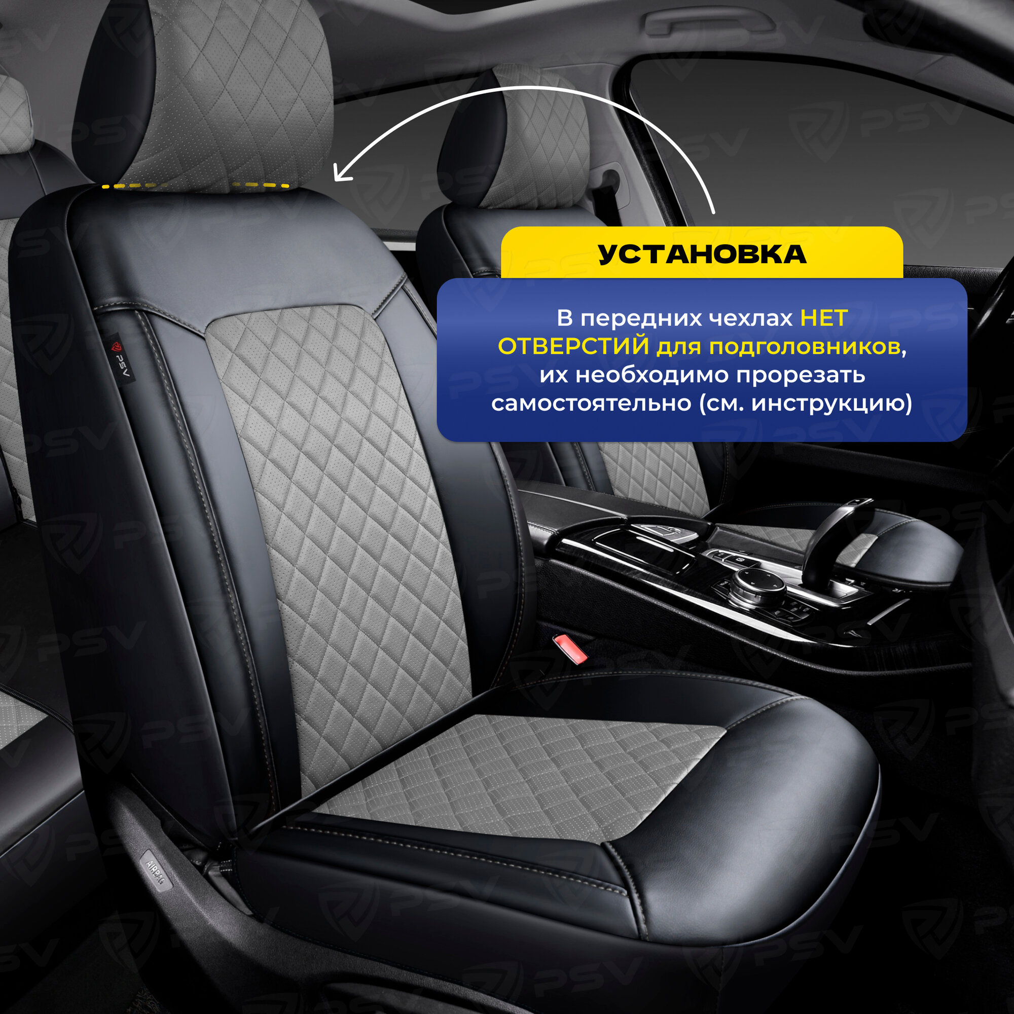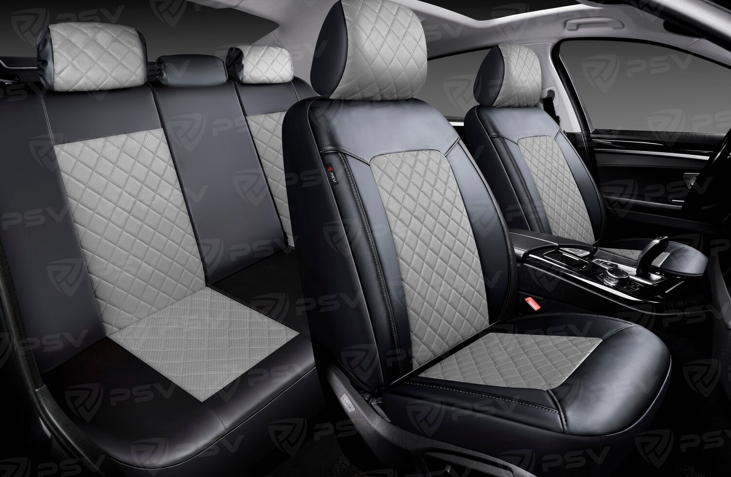 Чехлы PSV Elegant Next экокожа ромб серая отстрочка ромба черные