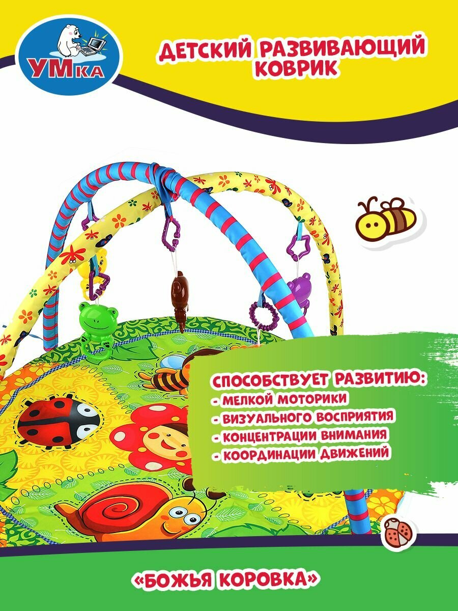 Детский игровой коврик "Божья коровка" с игрушками на подвеске Умка B1682458-R