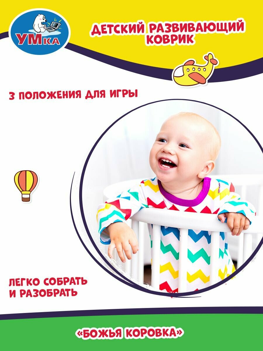СохранитьИгровой коврик развивающий божья коровка 2 дуги, 5 съёмных игрушек 85 см х 85 см умка B1682458-R интересное: