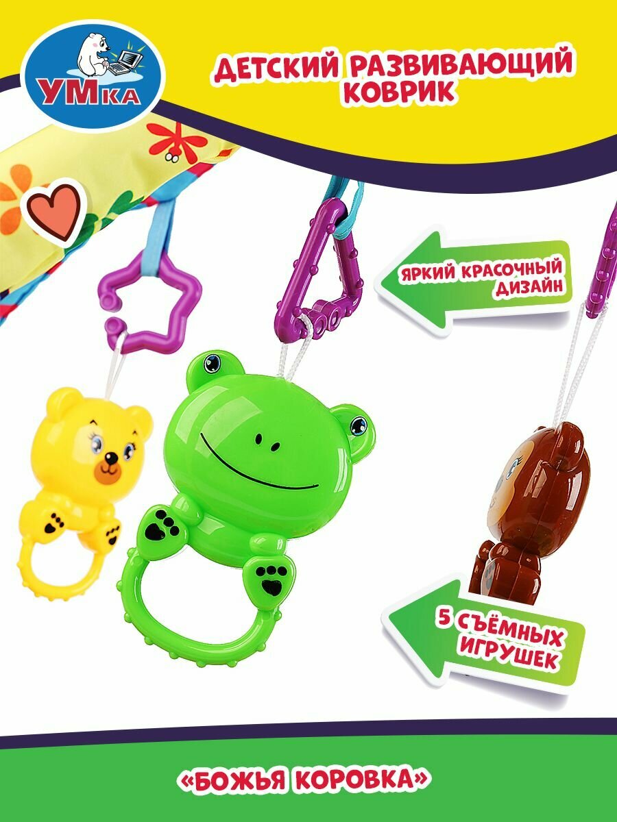 Купить Игровой коврик развивающий божья коровка 2 дуги, 5 съёмных игрушек 85 см х 85 см умка B1682458-R