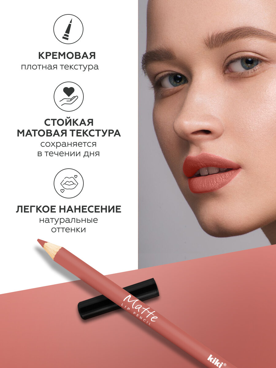 Купить Карандаш для губ kiki MATTE тон 21 сливочный, водостойкий, матовый, насыщенный цвет, косметический карандаш для губ