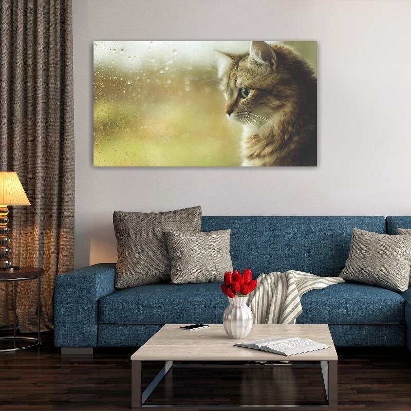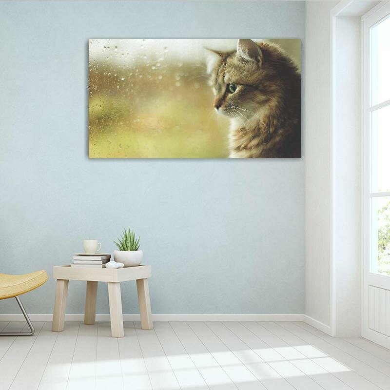 Картина на холсте 60x110 Альянс Лес "Осень котэ капли дождь окно" на подрамнике / интерьер/ декор интересное: