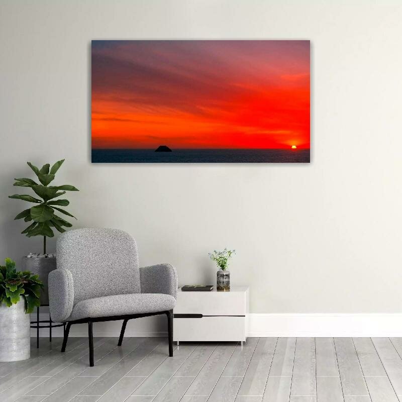 Купить Картина на холсте 60x110 Альянс Лес "Закат остров облака море" на подрамнике / интерьер/ декор