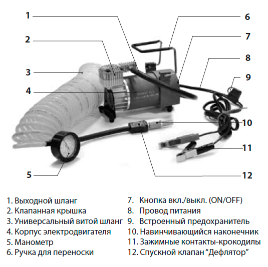 | Плюсы: | Длины провода и шланга хватает для комфортной подкачки всех колёс. |