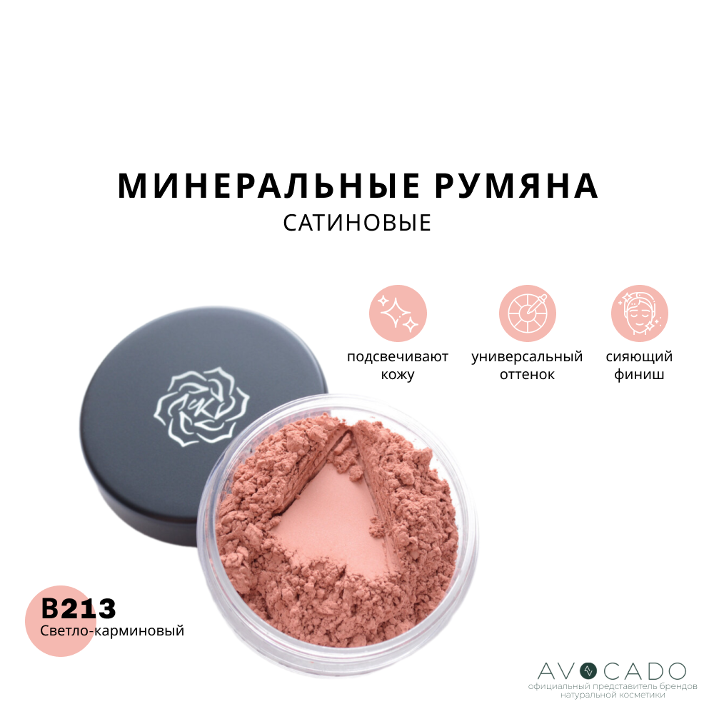 В213 Румяна сатиново-шиммерные "Светло-карминовые" Kristall Minerals Cosmetics 4 г