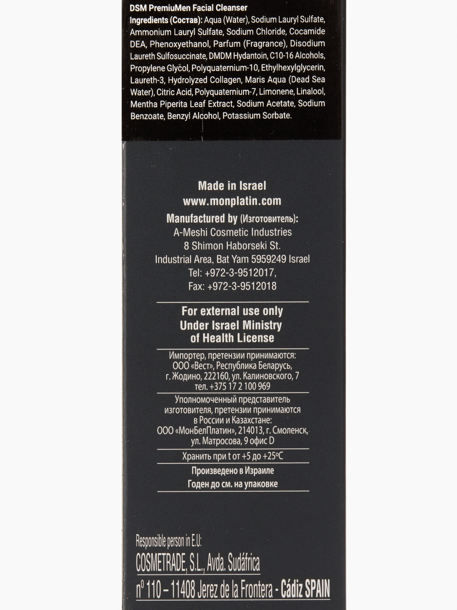 Средство для лица очищающее Mon Platin DSM мужское 150мл интересное: