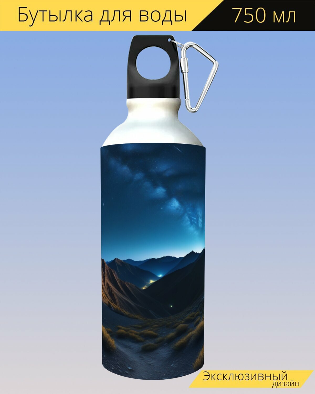Бутылка фляга для воды "Горы под звездами" 750 мл. с карабином и принтом интересное: