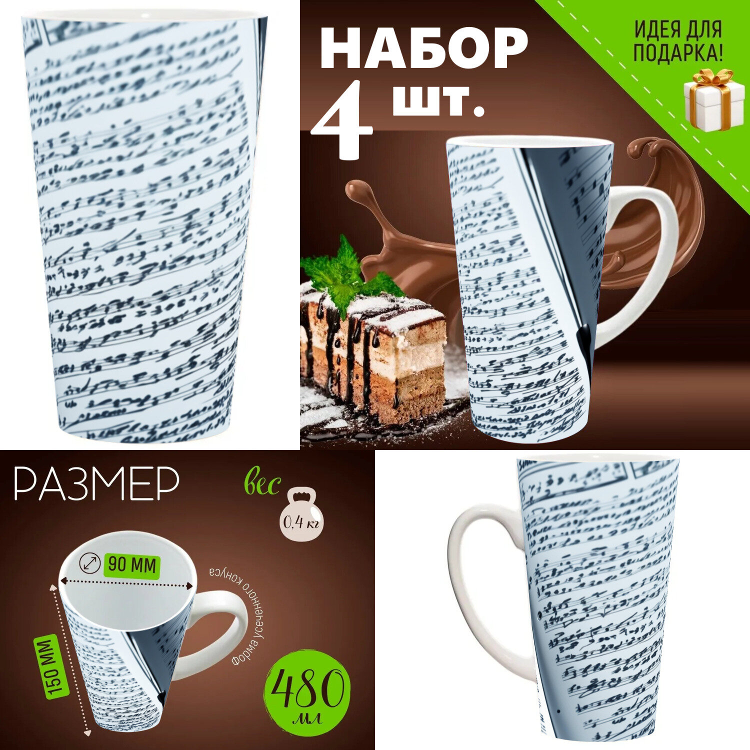 4 шт. Набор кружек с принтом "Лунные дневники: записки астронавта" 500 мл. интересное: