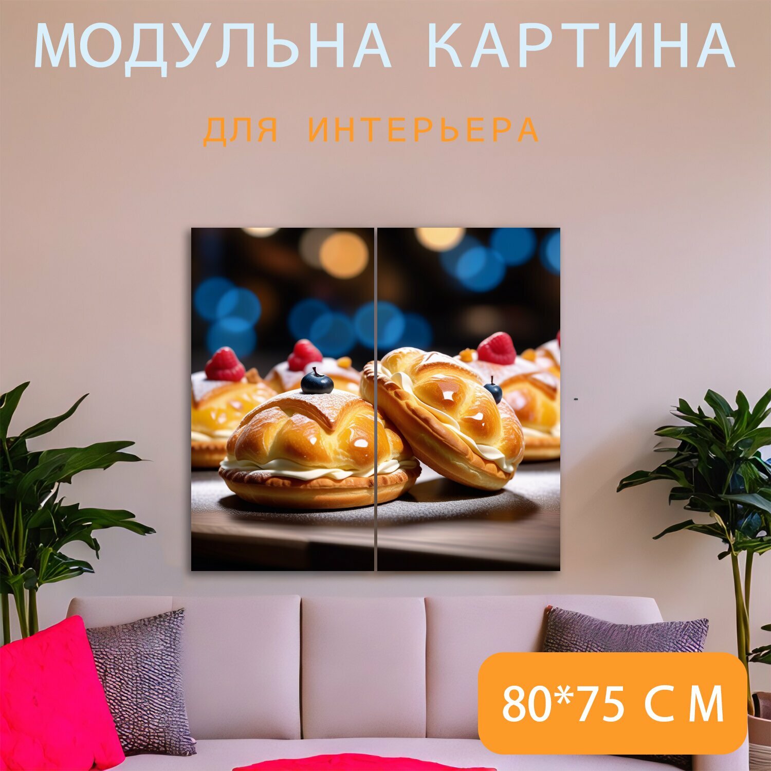 Модульная картина на холсте "Ночное настроение с ароматом свежей выпечки" триптих на подрамнике 225х120 см. для интерьера