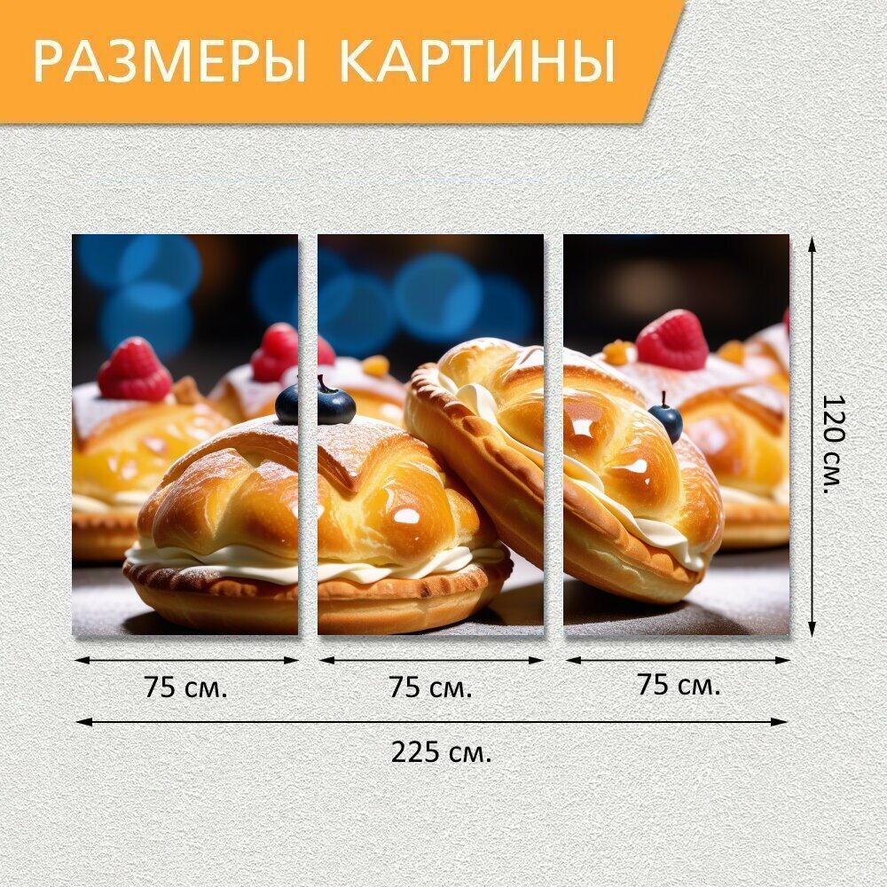 Купить Модульная картина на холсте "Ночное настроение с ароматом свежей выпечки" триптих на подрамнике 225х120 см. для интерьера