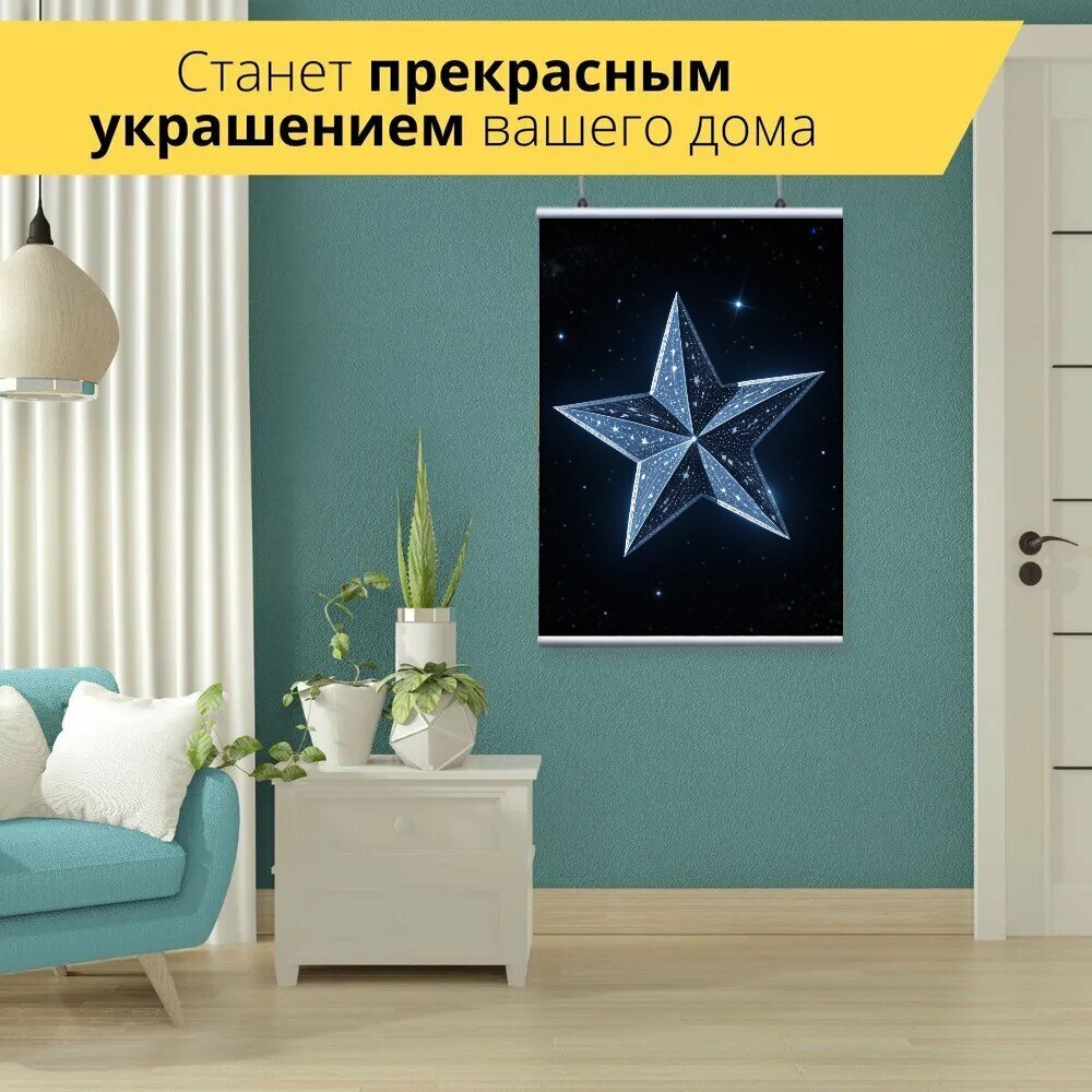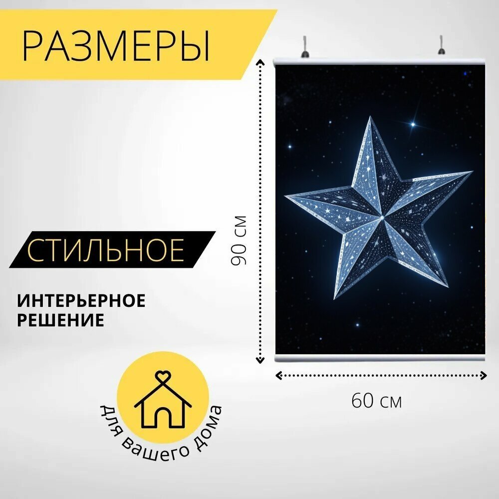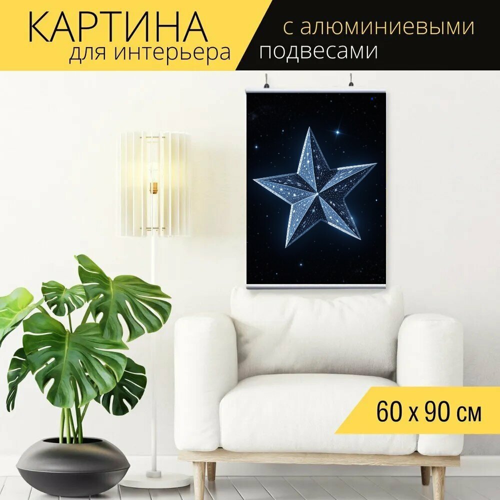 Картина на холсте "Бриллиантовая звезда в ночном небе" с подвесами 60х90 см. для интерьера на стену интересное: