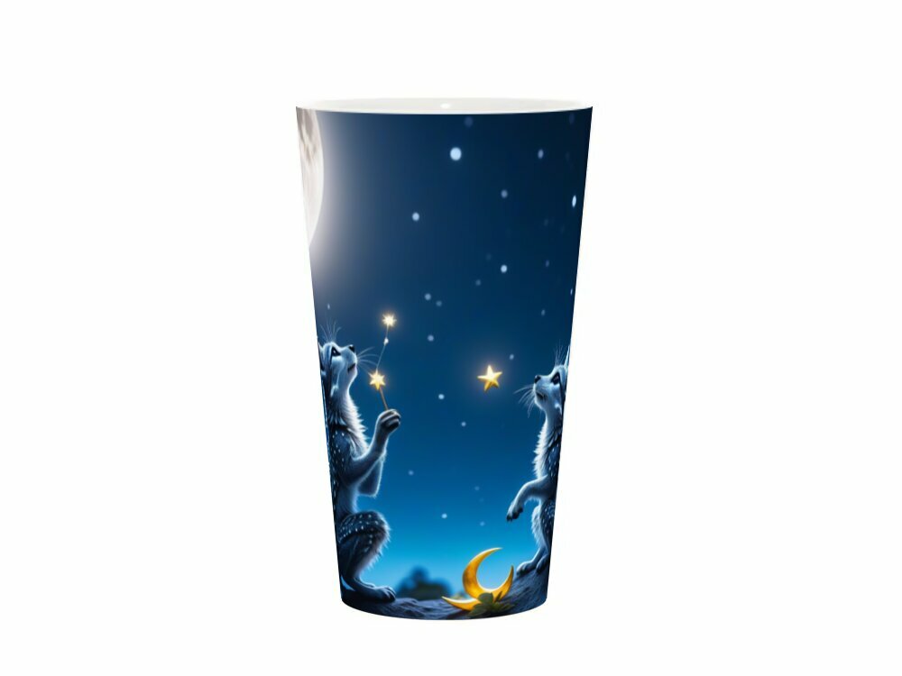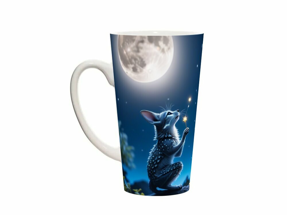 Купить Кружка латте керамическая большая для чая и кофе с прикольным принтом "Сказочные существа загадывают желания возле луны" 500 мл.