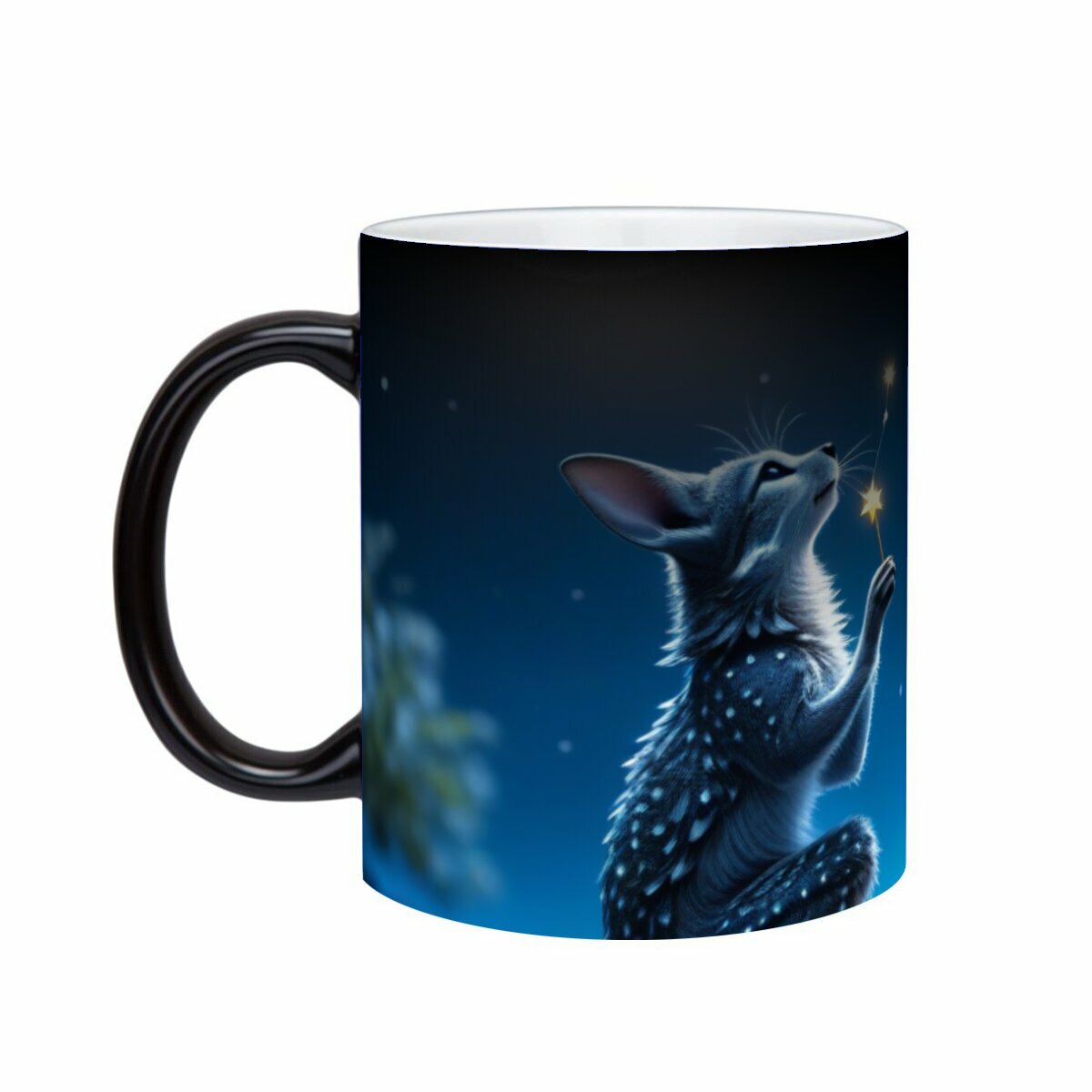 Купить Кружка хамелеон с принтом "Сказочные существа загадывают желания возле луны" 330 мл.