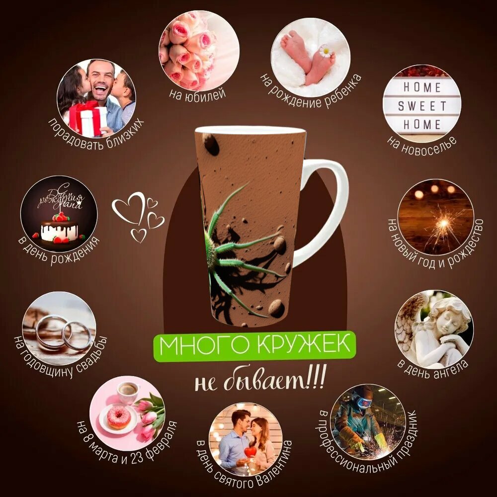 Кружка латте керамическая большая для чая и кофе с прикольным принтом "Флора и фауна на марсе" 500 мл. интересное: