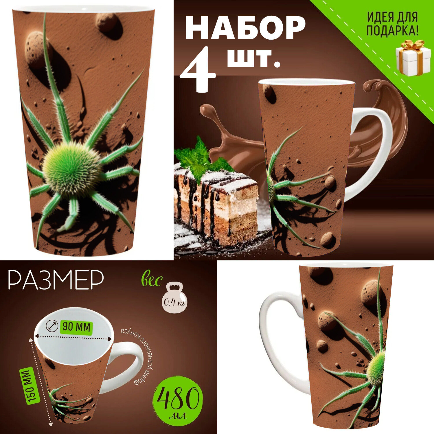Купить 4 шт. Набор кружек с принтом "Флора и фауна на марсе" 500 мл.