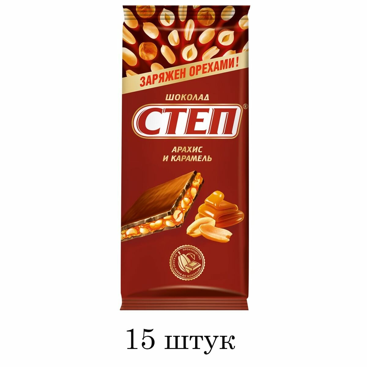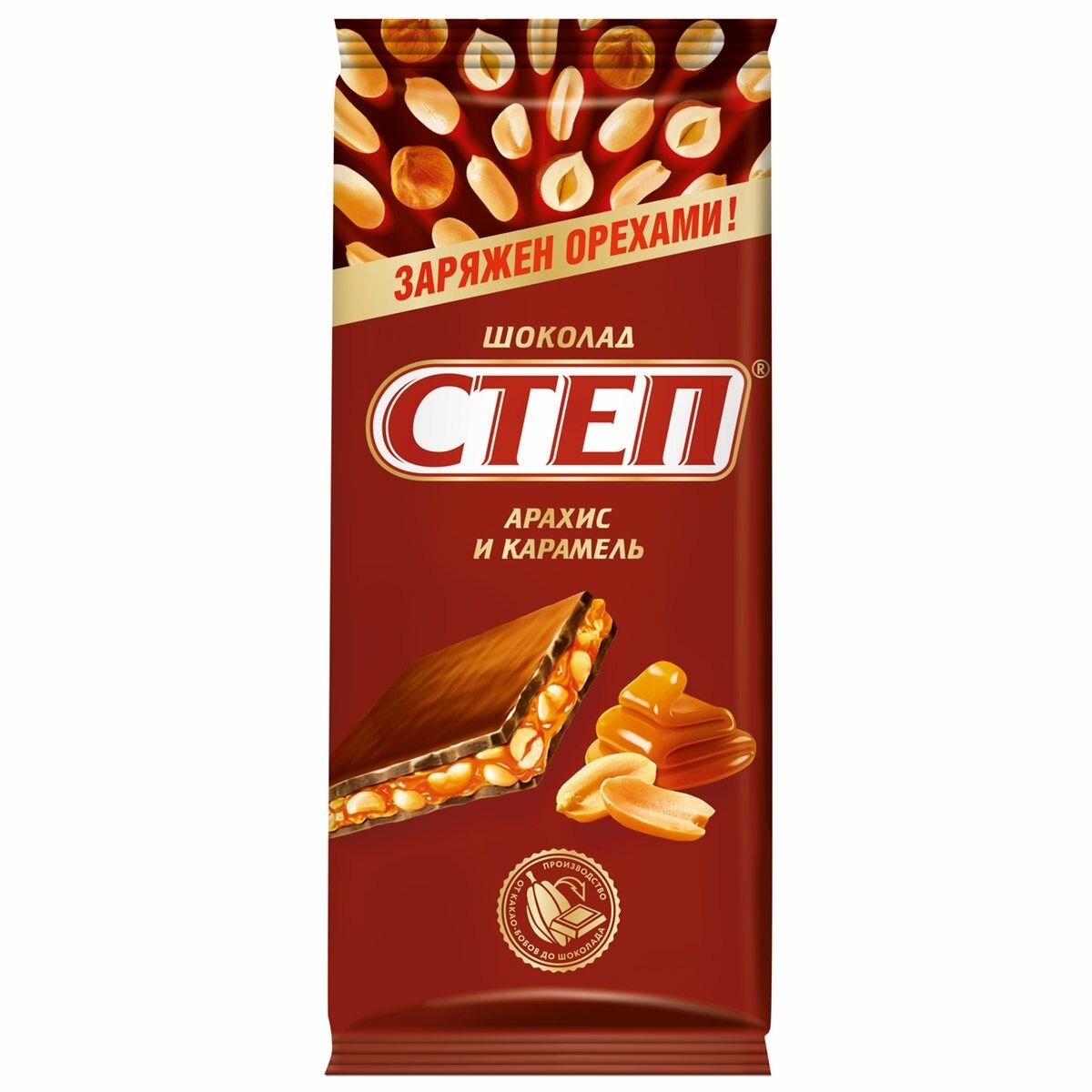 Купить Степ шоколад с начинкой Арахис и карамель, 90г, 15 шт