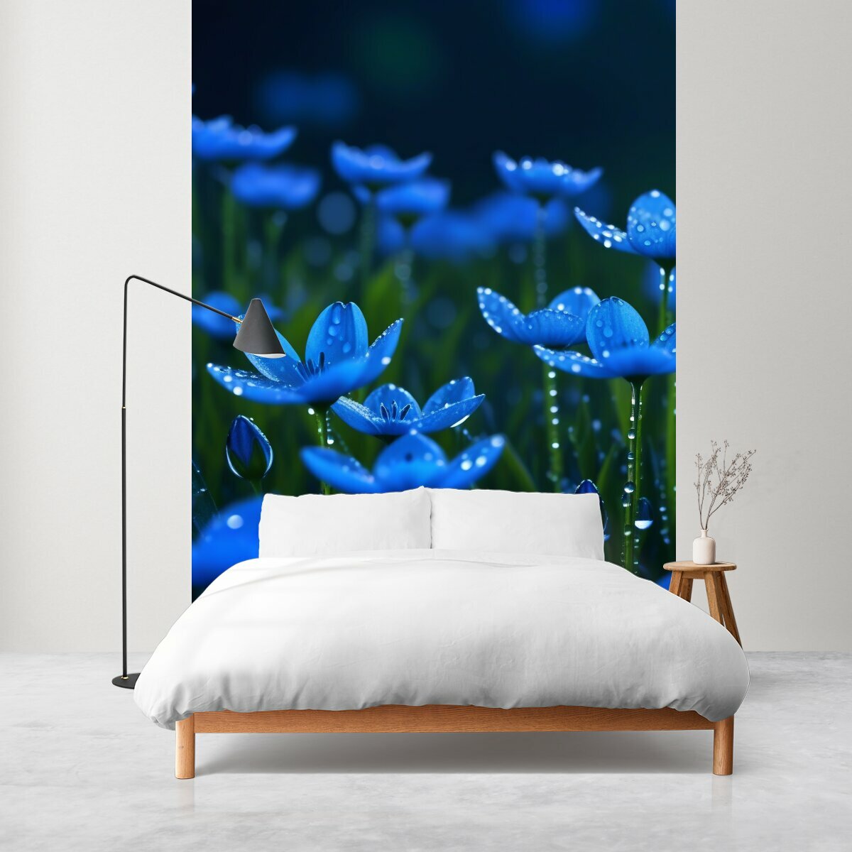 Фотообои "Ночной пейзаж с цветами и блестящими каплями росы" 200x270 см. флизелиновые на стену интересное: