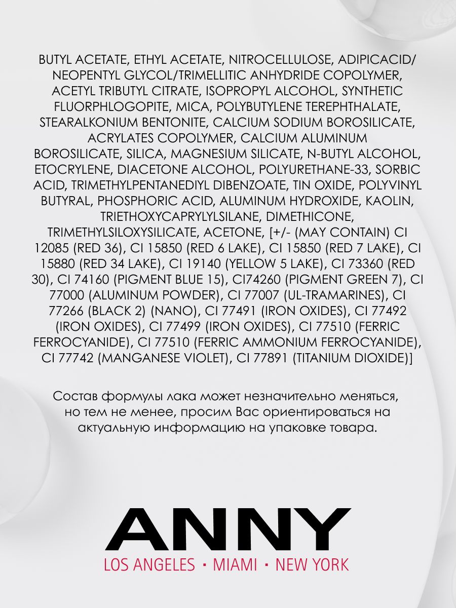 СохранитьANNY Лак для ногтей стойкий без лампы №406.60 Голливудские ночи интересное: