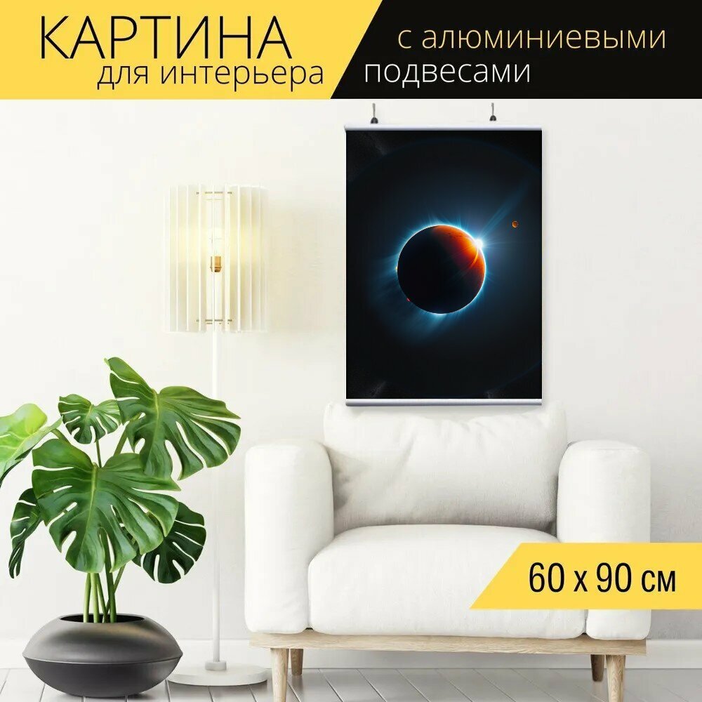 Картина на холсте "Затмение солнца на поверхности другой планеты" с подвесами 60х90 см. для интерьера на стену интересное: