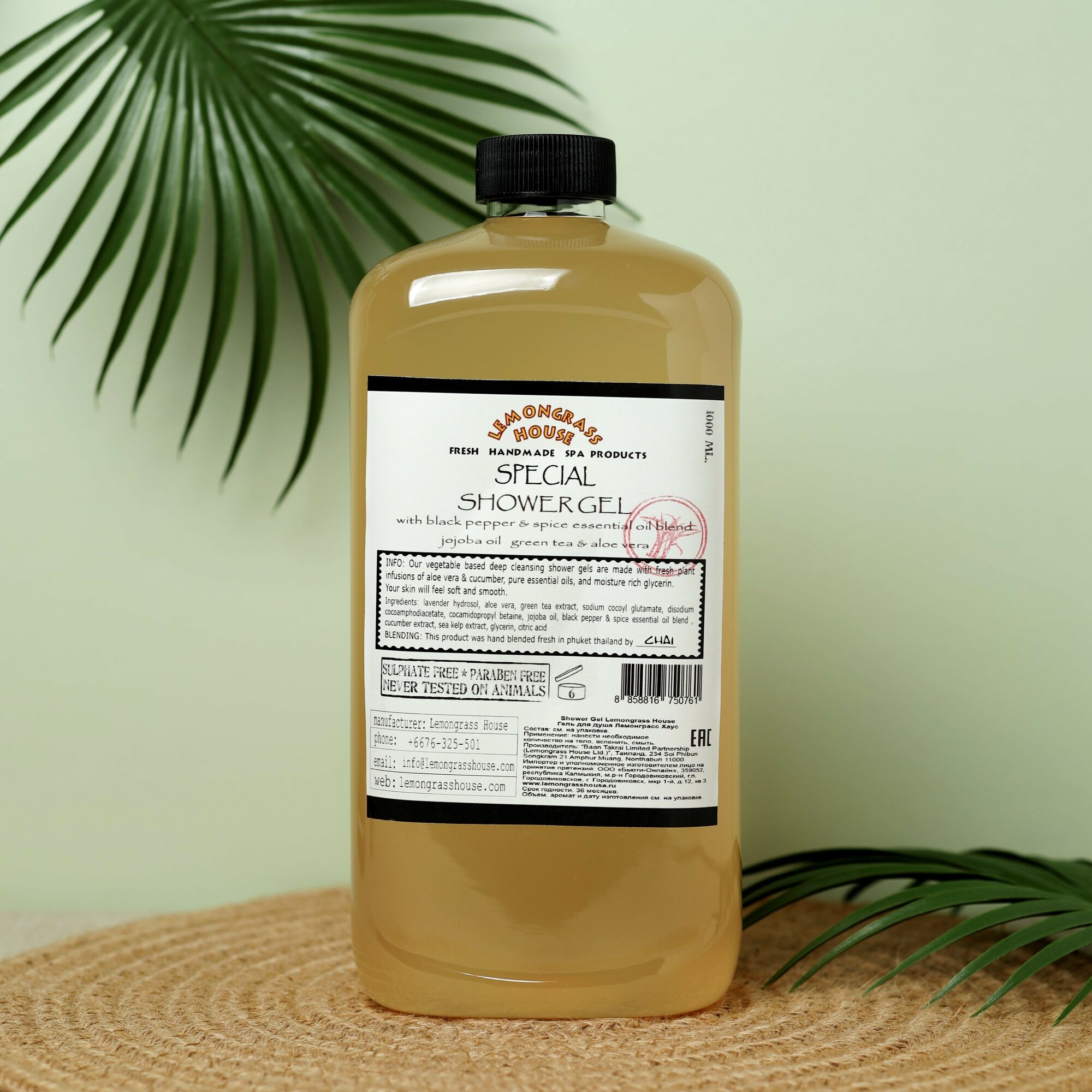 Купить Гель для душа "Черный перец и специи" 1л. от Lemongrass House (Таиланд) Безсульфатный натуральный гель, увлажняющий, с пряным ароматом, с эфирными маслами.