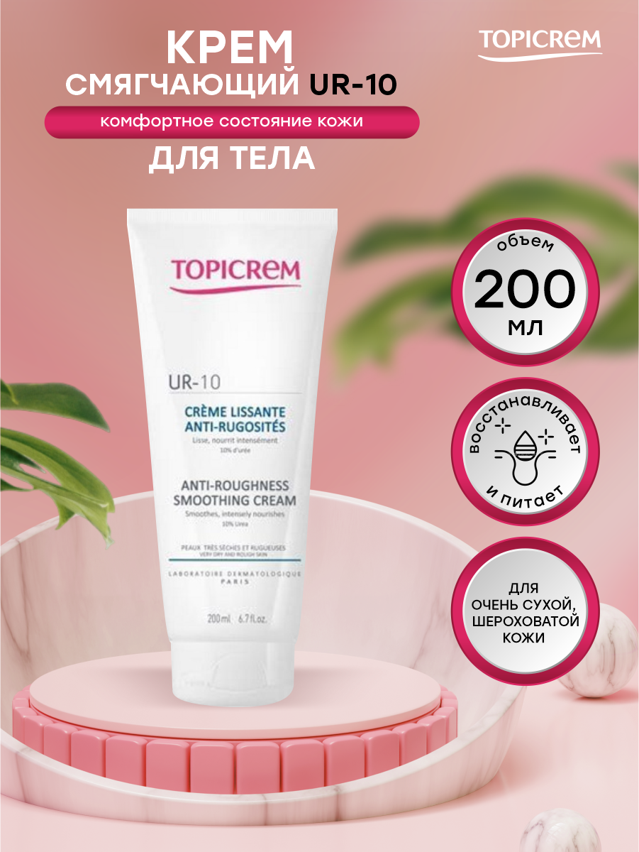 Крем для тела Topicrem UR-10 Anti-Roughness Smoothing Cream, 200 мл, для сухой и огрубевшей кожи