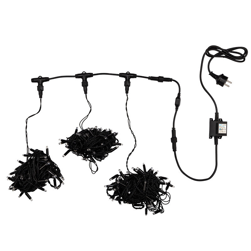 Светодиодная гирлянда Клип-Лайт NEON-NIGHT 3 нити по 10 метров, 198 белых светодиодов, черный провод