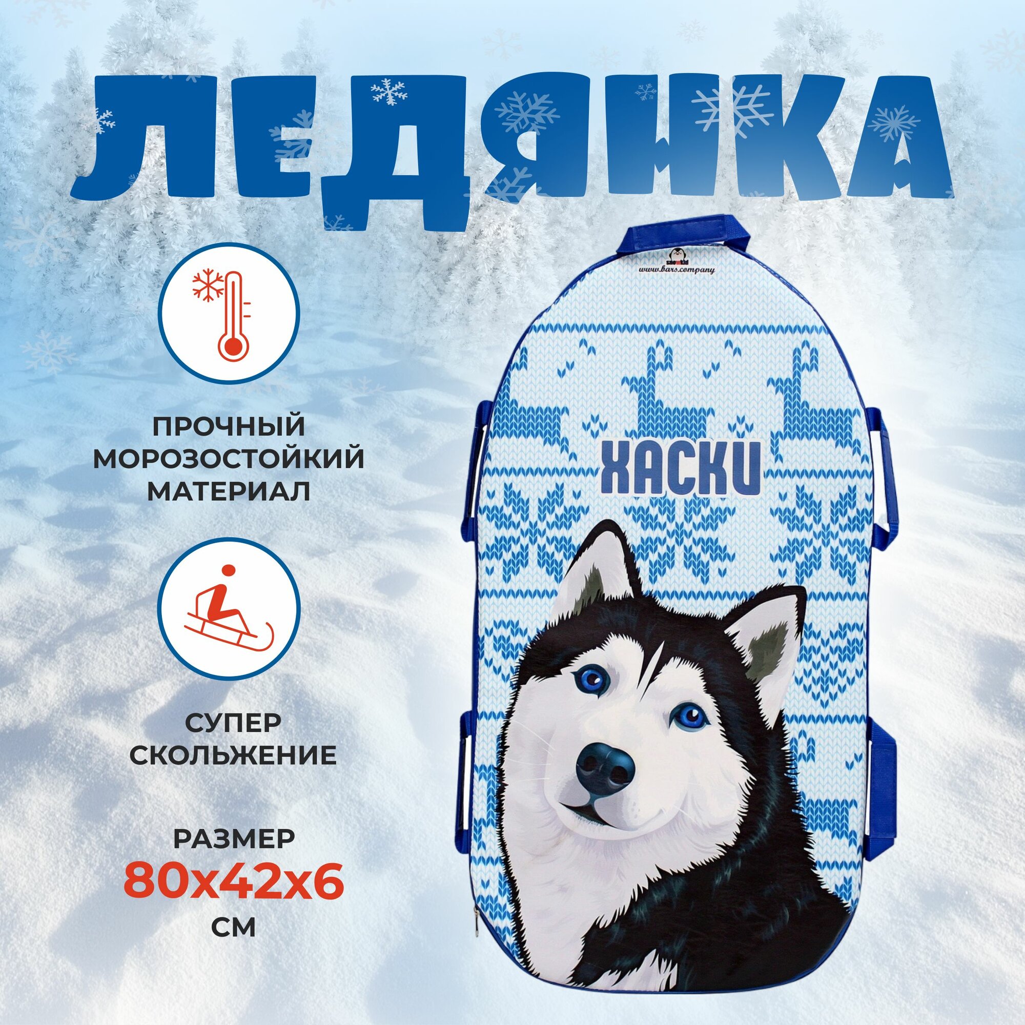 Санки-ледянки SNOWKID Хаски цвет синий, 80 см. интересное: