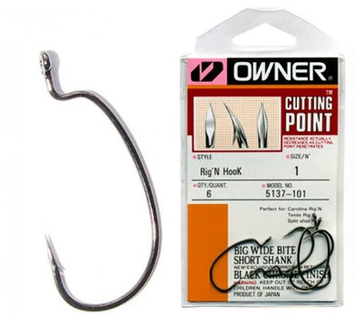 Крючки офсетные Owner 5137 Rig'n Hook 1. (6 шт. в упаковке)