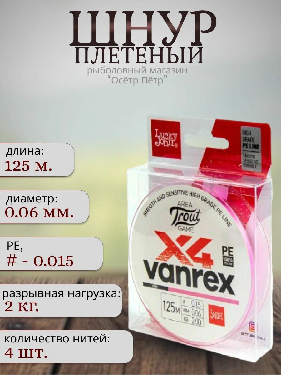 Леска VANREX Х4 плетёная 125m, 0.10mm, 3.40kg "Lucky John"