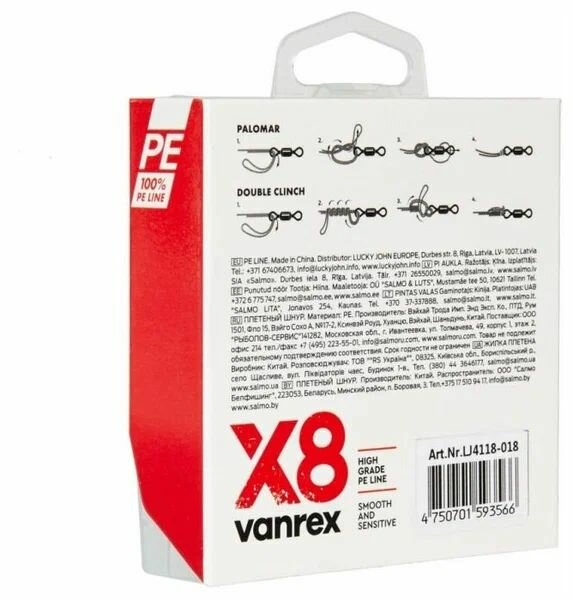 Леска VANREX Х8 плетёная 125m "Lucky John" 0.14mm, 6.30kg