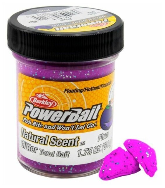 Паста форелевая Berkley PowerBait NATURAL SCENT Glitter TROUT BAIT 50gr FRUITS - PLUM