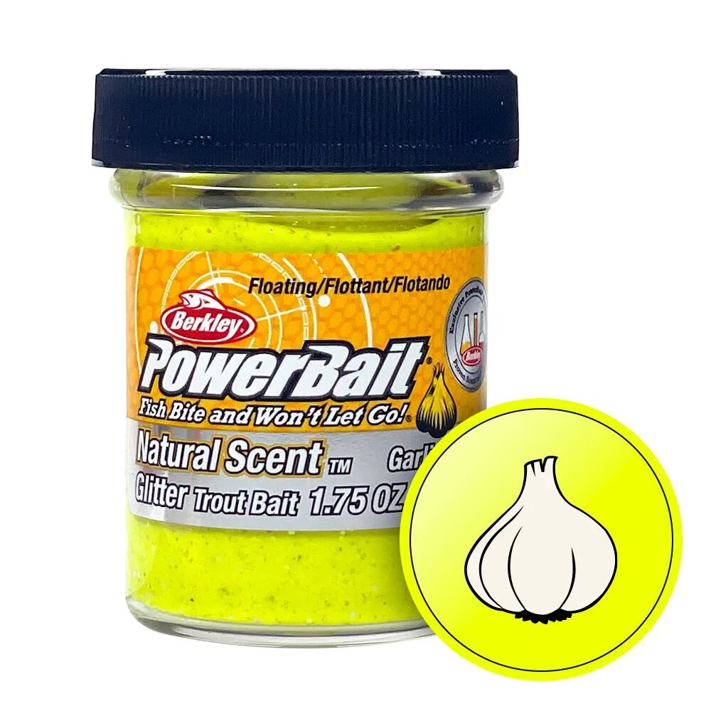 Паста форелевая Berkley PowerBait Natural Scent Glitter Trout Bait Garlic; Chartreuse (чеснок, шартрез с блестками) 50гр