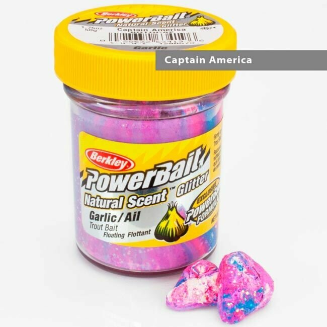 Berkley, Форелевая паста Powerbait Natural Scent Glitter Garlic, Captain America