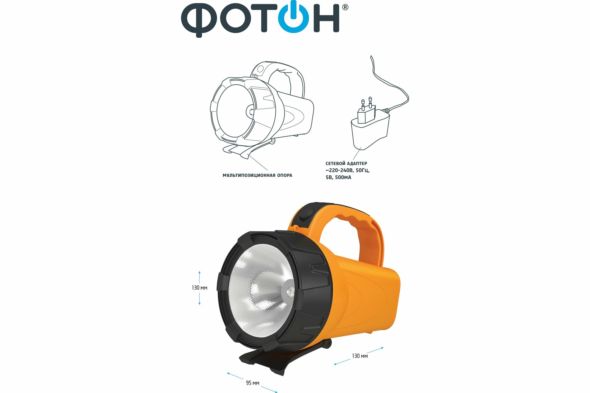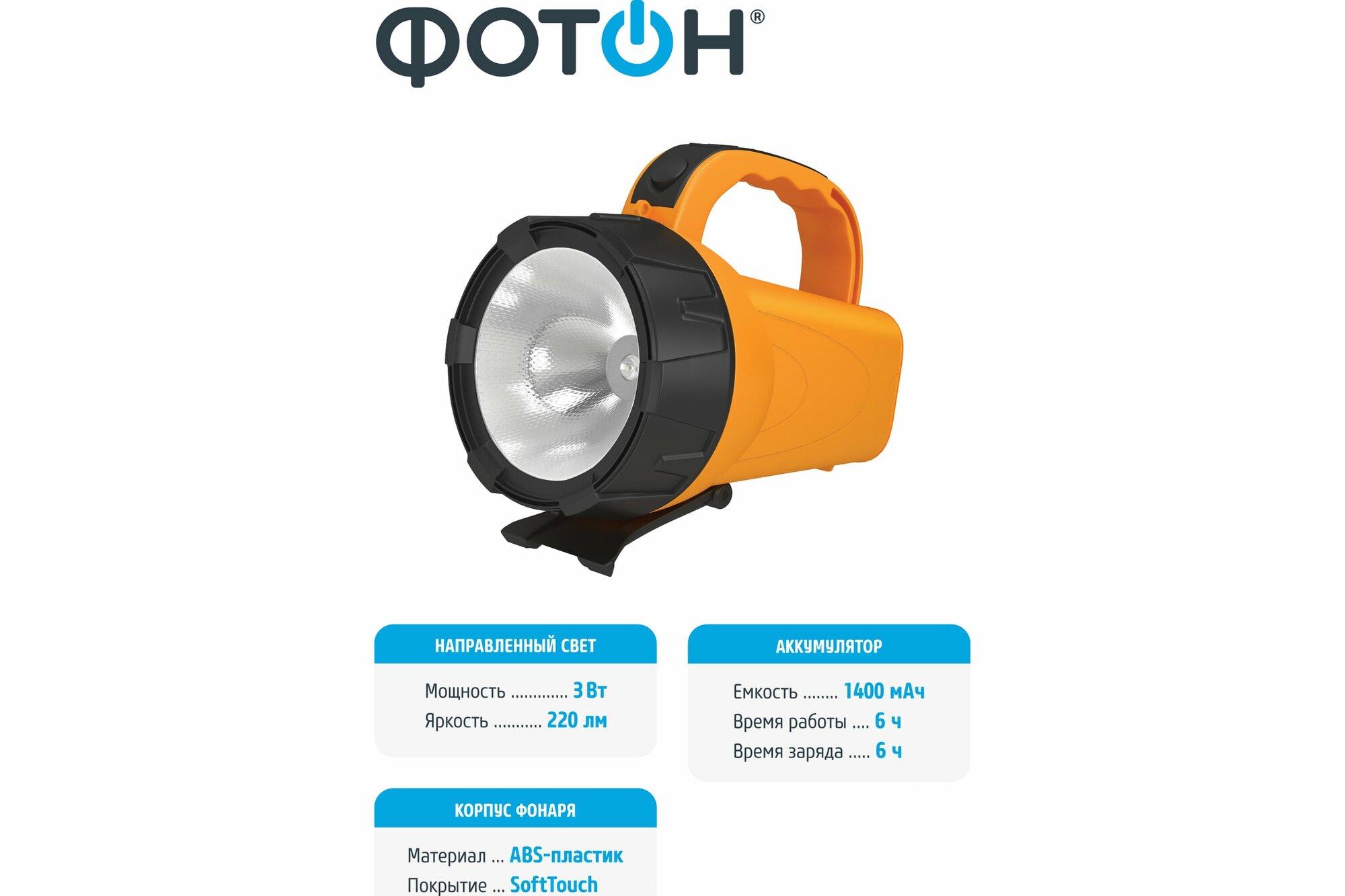 Фонарь-прожектор Фотон аккумуляторный светодиодный РB-5200 (3W), оранжевый