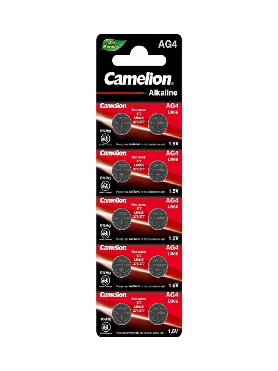 Элемент питания алкалиновый "таблетка" LR626/377A/177/G 4 Mercury Free AG4-BP0%Hg для часов BL-10 (блист.10шт) | код 12812 | Camelion (1 упак.)