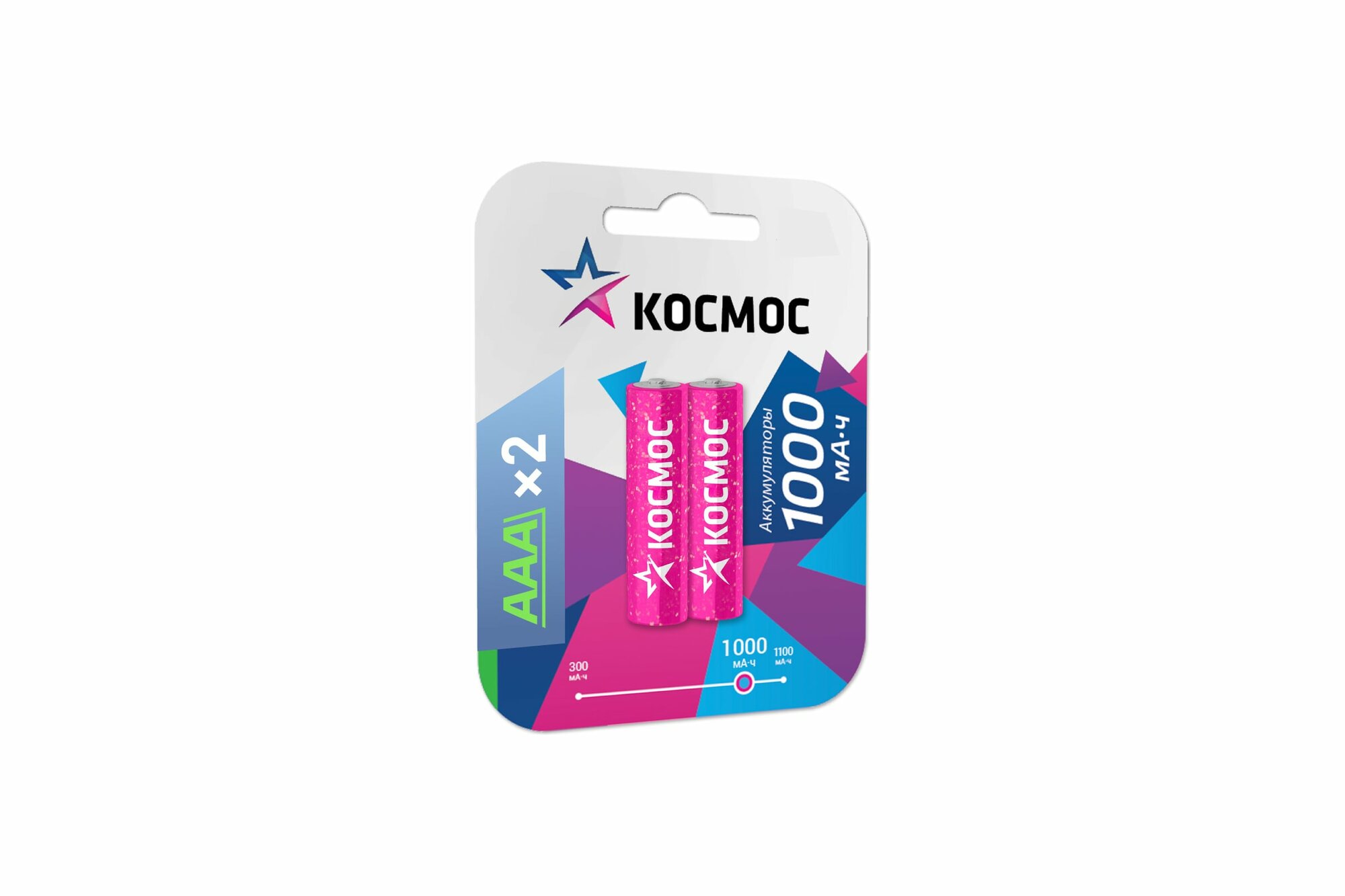 Аккумулятор Космос AAA, HR03 1000 mAh, NI-MH, 2 шт
