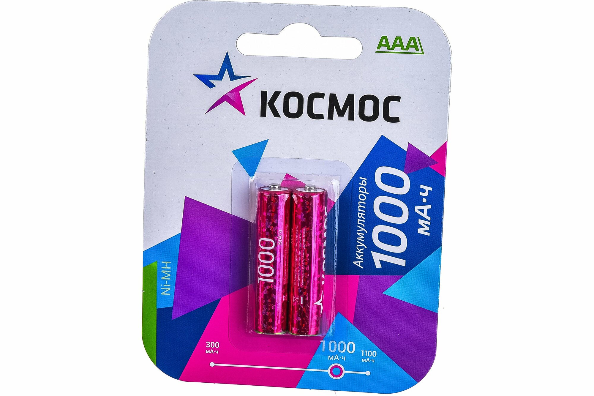 Аккумулятор AAA/LR03 NI-MN 1000мА.ч BP-2 (блист.2шт) космос KOCR03NIMH(1000MAH)