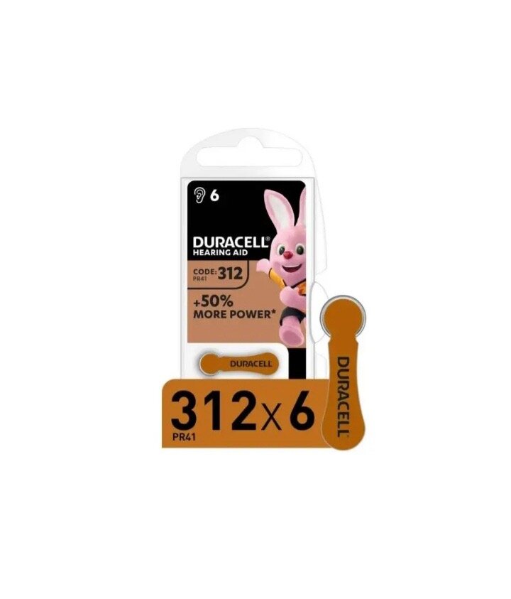Батарейки DURACELL ZA312 (PR41) для слуховых аппаратов (6 шт)