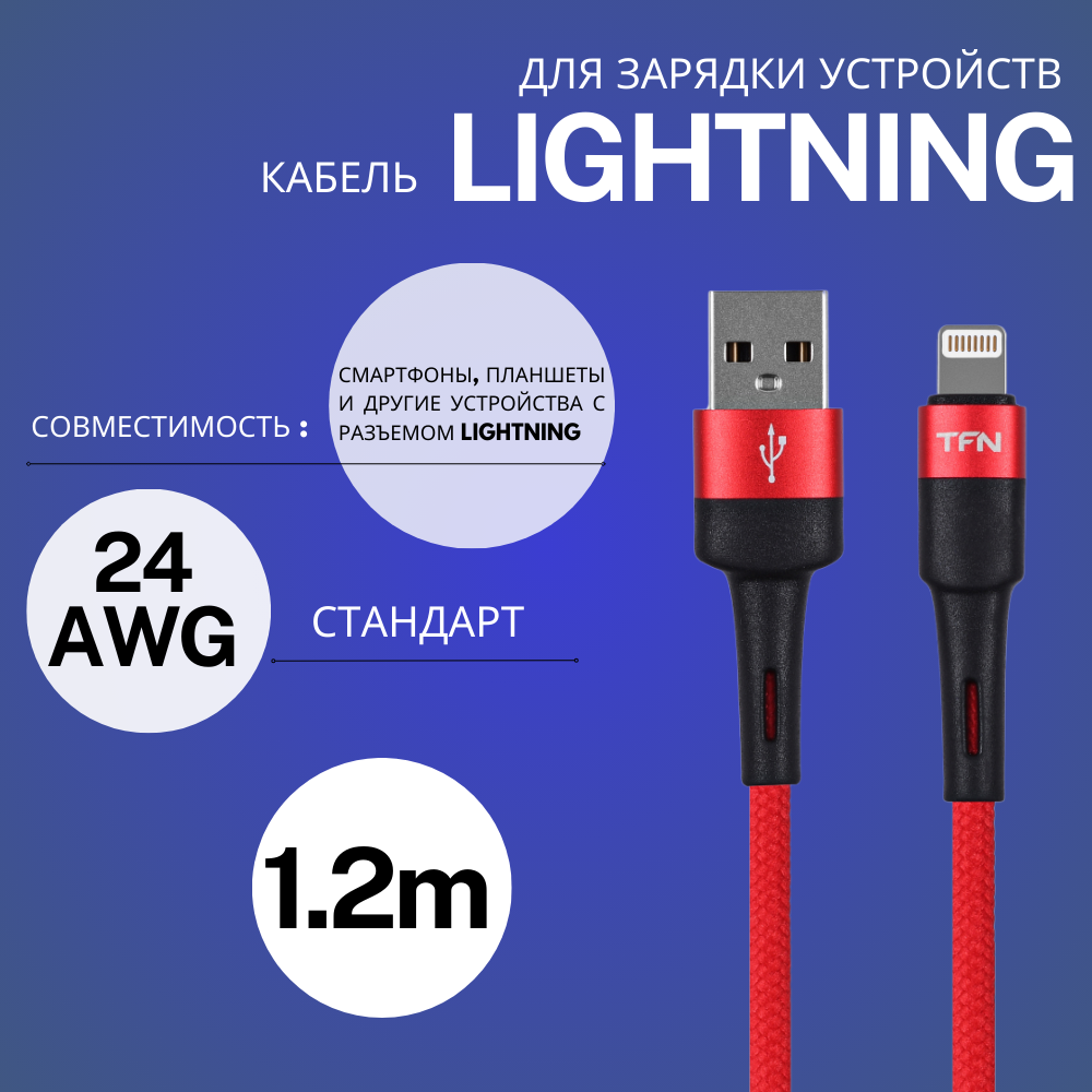 Купить Кабель TFN USB - Lightning 1.2m. 2A Red (TFN-C-ENV-AL1MRD)
