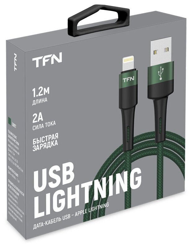 Купить Дата-кабель USB с разъемом 8-pin TFN ENV для Apple нейлон/зеленый 1,2м, TFN, TFN-С-ENV-AL1MGRN