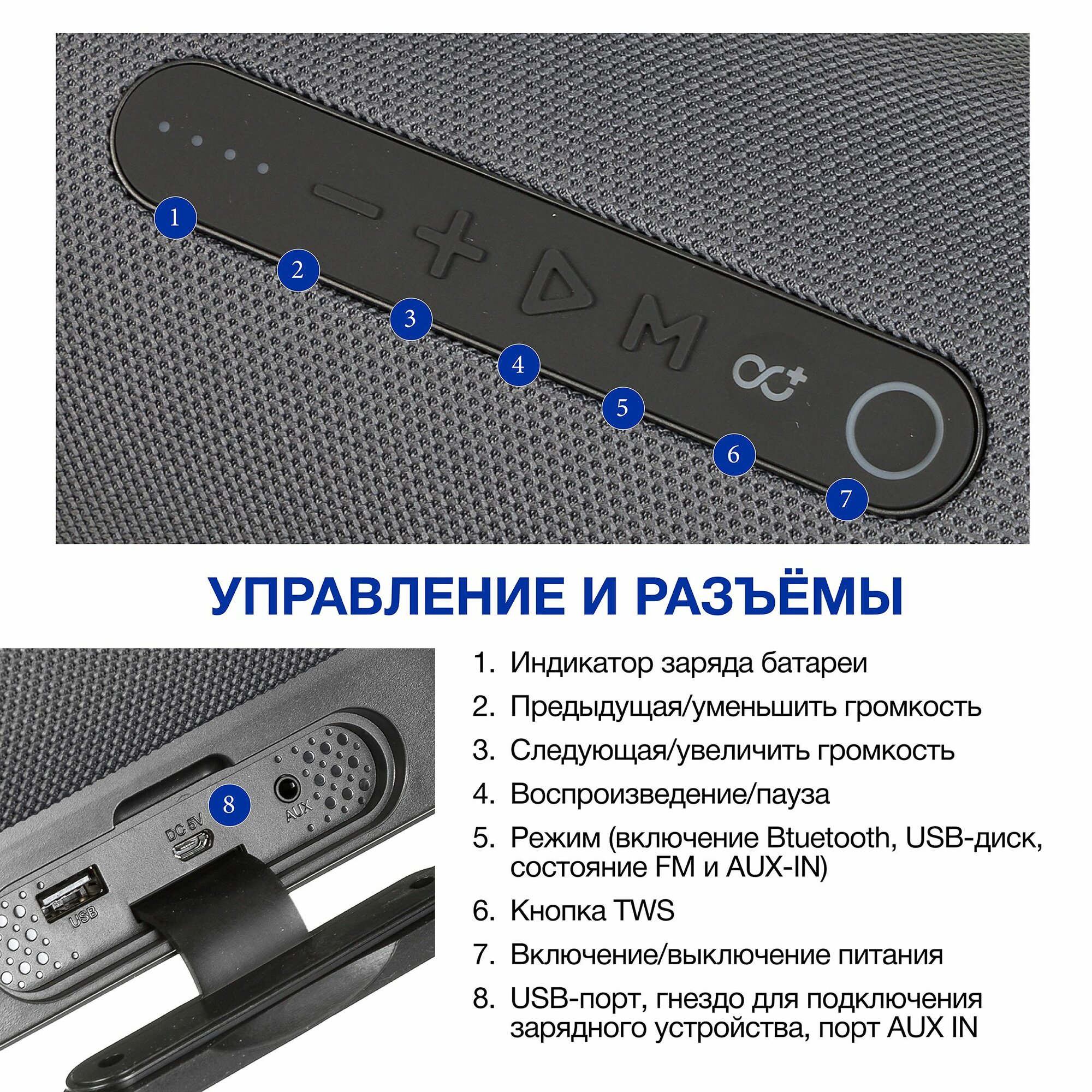 | Минусы: | На максимальной громкости колонка быстро греется и быстро разряжается |